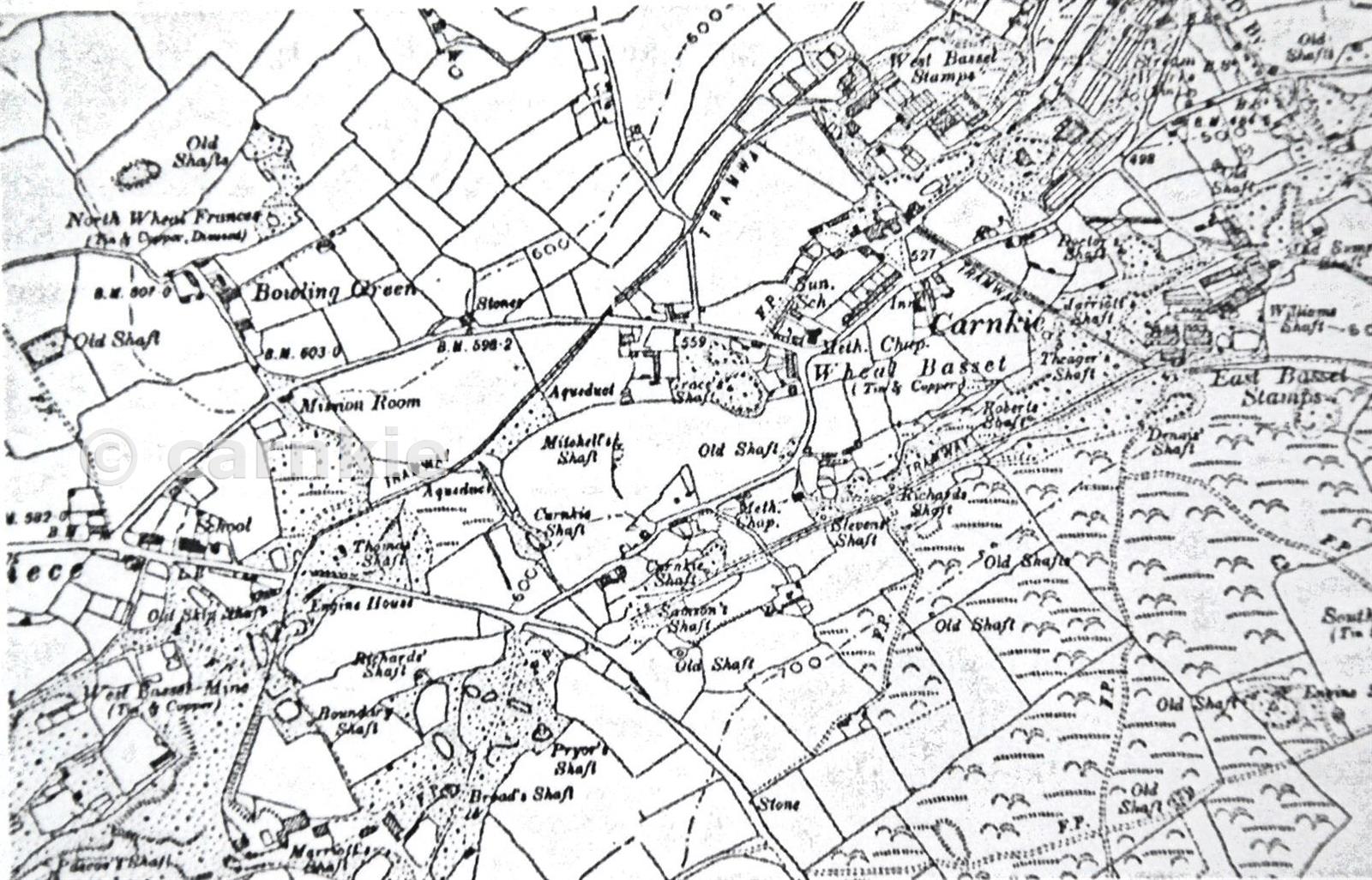 The tramway system from the 1906 survey 6 inch OS map LX111 SW. The extension to Marriott's Shaft had not yet been completed.