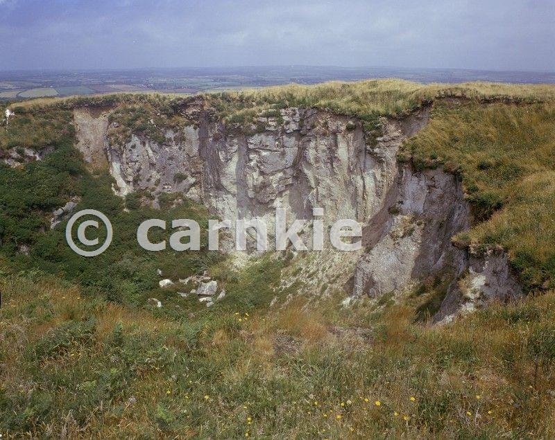 Tregonning Hill. Looking N. Old china clay-pit. Part of the old china clay workings in the kaolinised granite of Tregonning Hill on or near the site of the first china clay workings in Cornwall. Steep narrow quartz and greisen veins cut the altered granite. Photo P006026 Reproduced with the permission of the British Geological Survey ©NERC. All rights Reserved