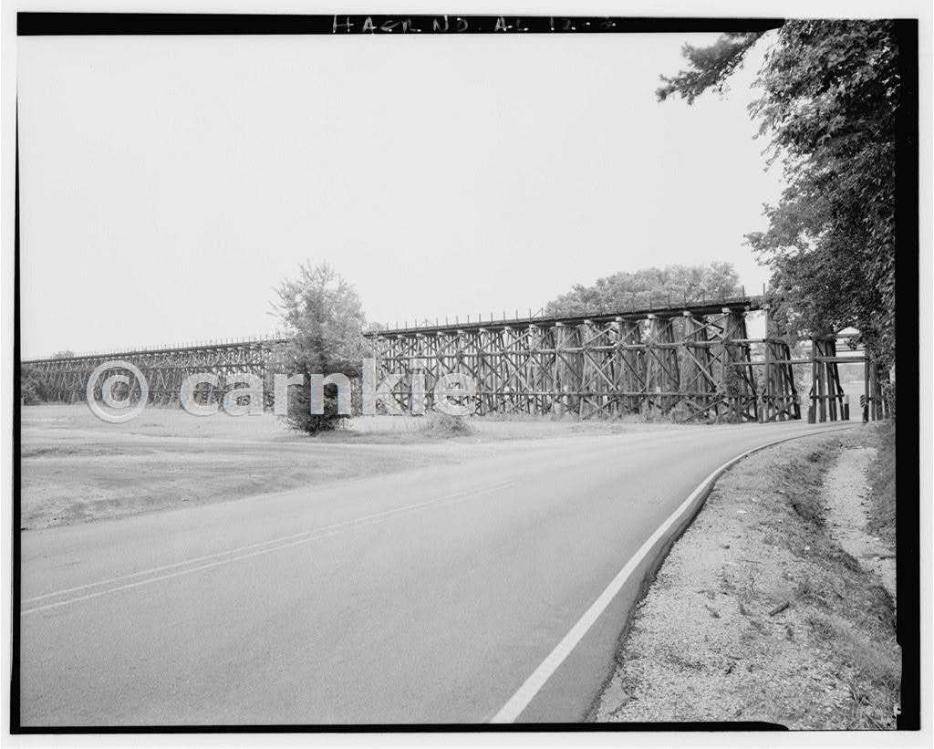 VIEW WITH APPROACH TRESTLE, TUSCALOOSA SIDE. Library of Congress, Prints & Photographs Division, HAER Reproduction number HAER ALA,63-TUSLO,27-2