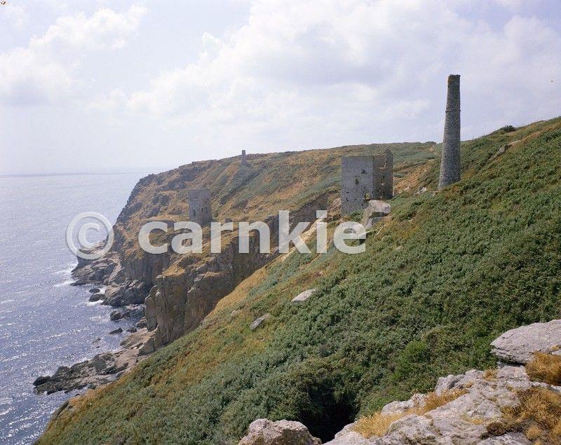 Trewavas Cliff. Looking W. Wheal Trewavas. Engine houses of Wheal Trewavas copper mine on the Tregonning - Godolphin granite near Trewavas Head. Photo P211875 Reproduced with the permission of the British Geological Survey ©NERC. All rights Reserved