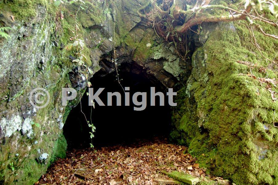 Small trial level between Allt cwmhenog quarry and main workings. This is the top level and extends for a few meters. The roof just inside the entrance is of slate lintels.