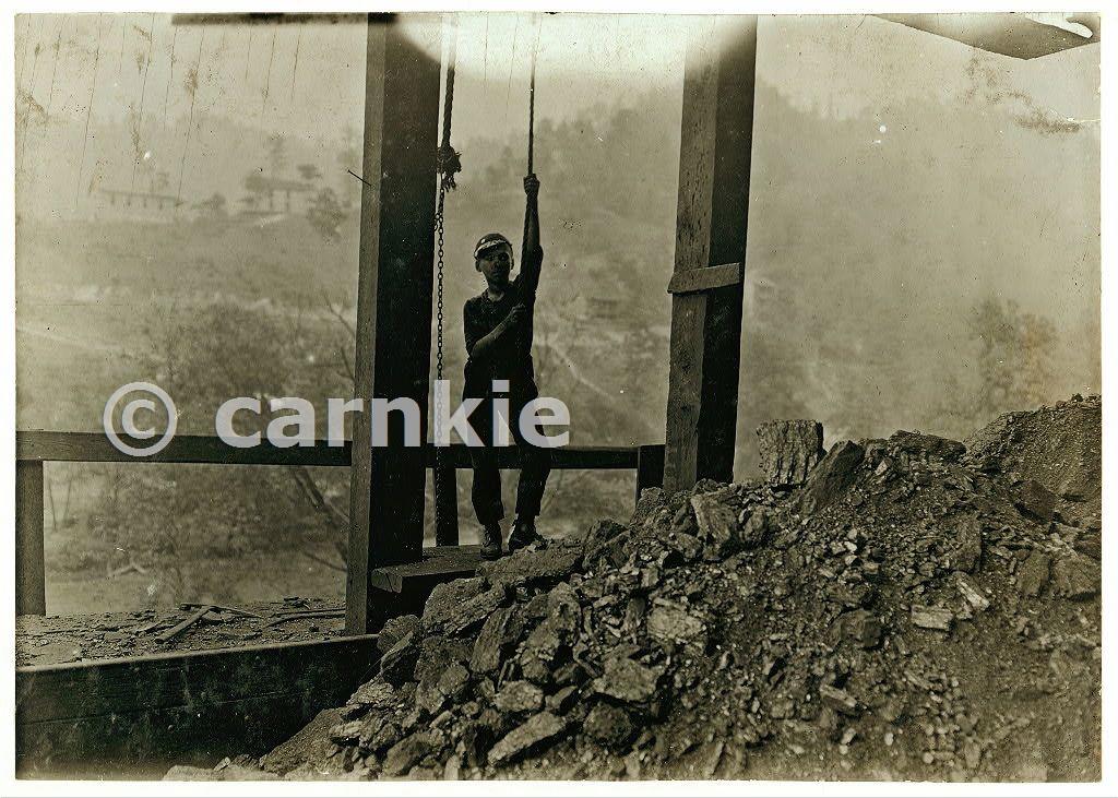 Welch W. Va. Boy running "trip rope" at tipple. Overgrown, but looked 13 yrs. old. Worked 10 hours a day. Location: Welch, West Virginia.
