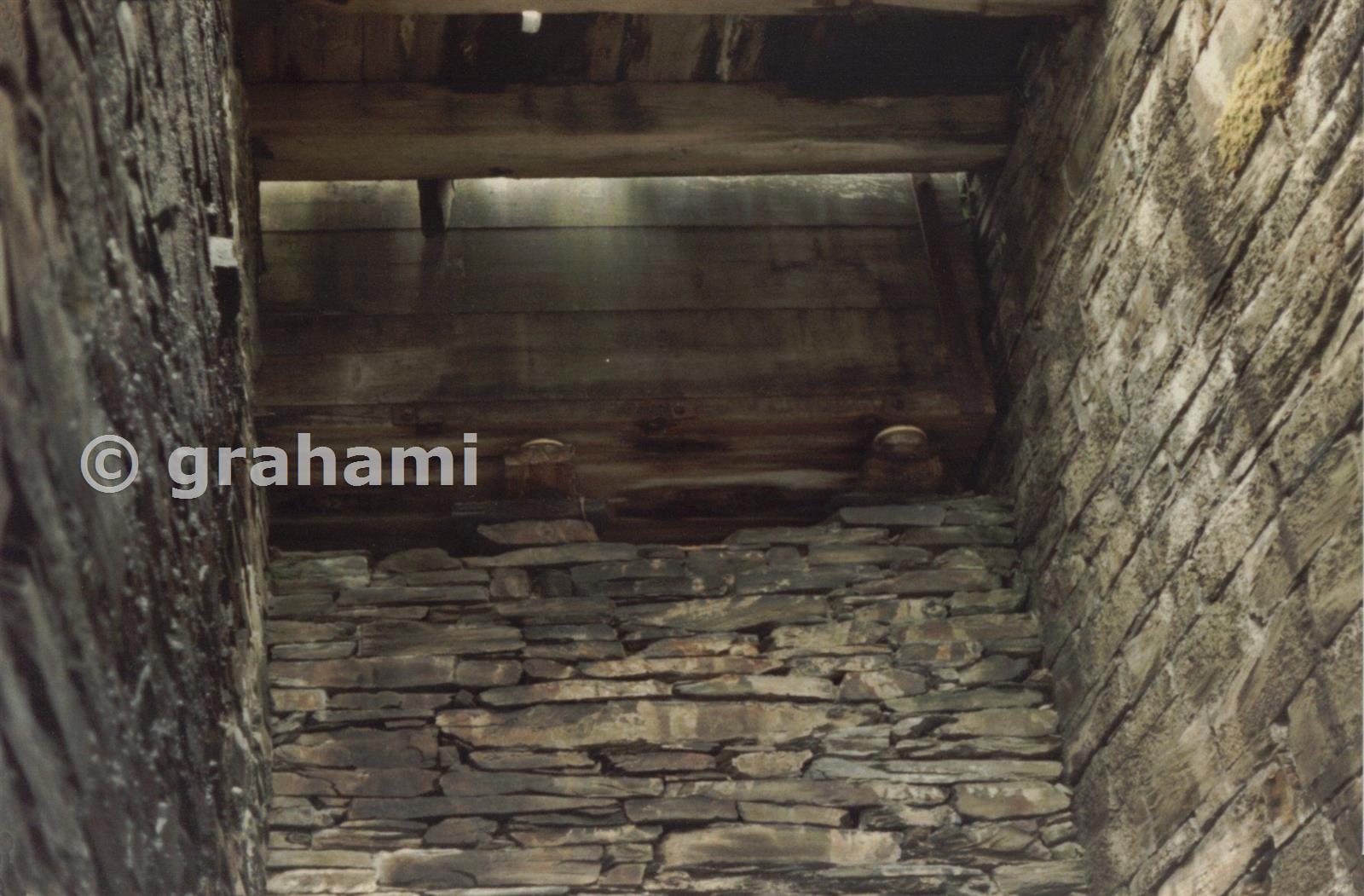 View underneath the drum platform, looking up to the Water tank. Note ceramic insulators!