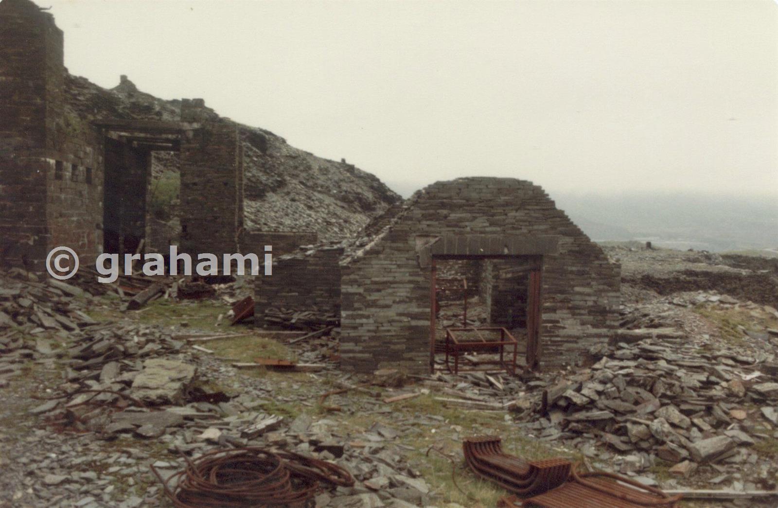 The buildings from the east side. The original small loco shed on the right was used to house the transformers.