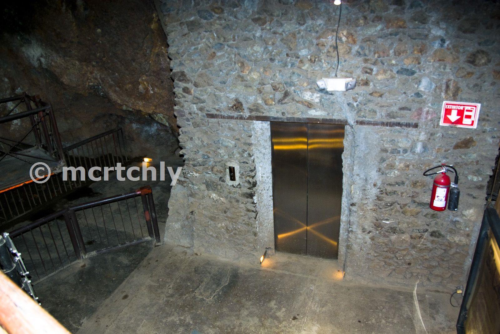 Exit from the main level to the upper entrance is via a lift. Certainly beats pursicking up the shaft.