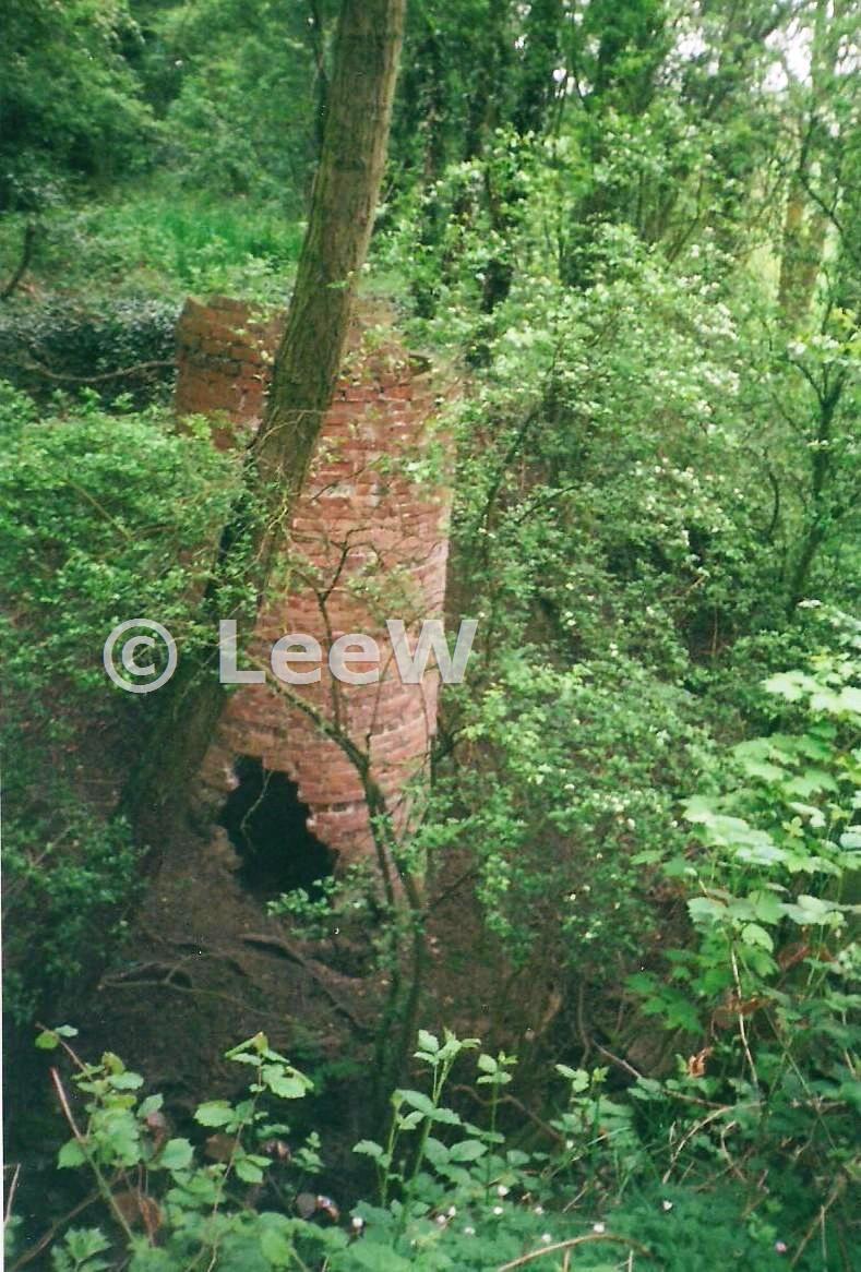 An old shaft which had been capped with a beehive cap (probably at original ground level) then later unearthed (possibly by the formation of the adjacent stream). The shaft was buried or part buried by the old reservoir which occupied the site. The shaft lining is doubled walled and 'end-on' bricks probably show the method of sinking the shaft. The shaft fill is seen through the hole. Photo taken in 2004. A rare (possibly unique) find now gone. The correct name of the shaft is currently unknown but it's at the site of West Hallam No4 Colliery