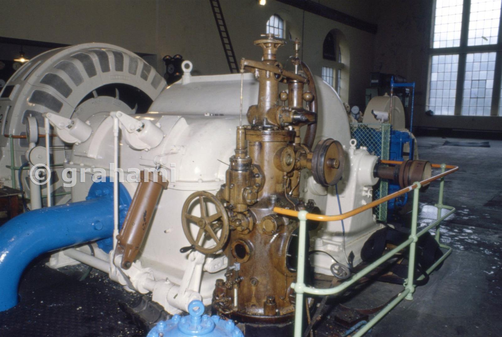 The governor is driven by belt from the main shaft of the Pelton - No.2 was obviously undergoing maintenance!