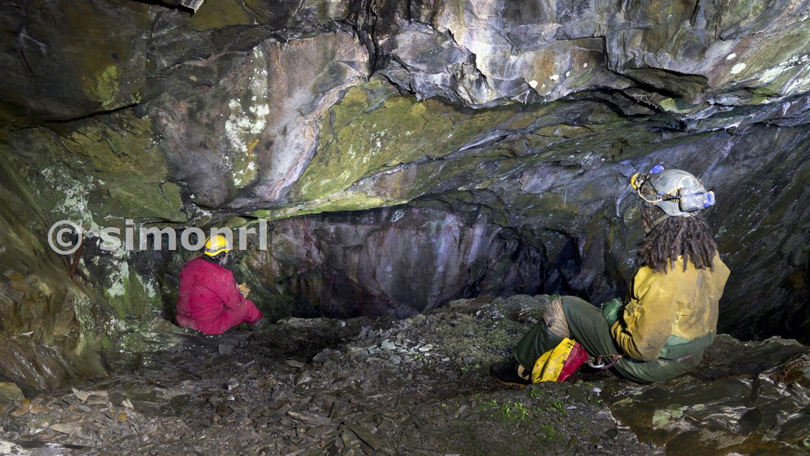 Looking into upper daylight chamber - left side can be scrambled to intermediate level Hafod Uchaf Slate Quarry May 2014