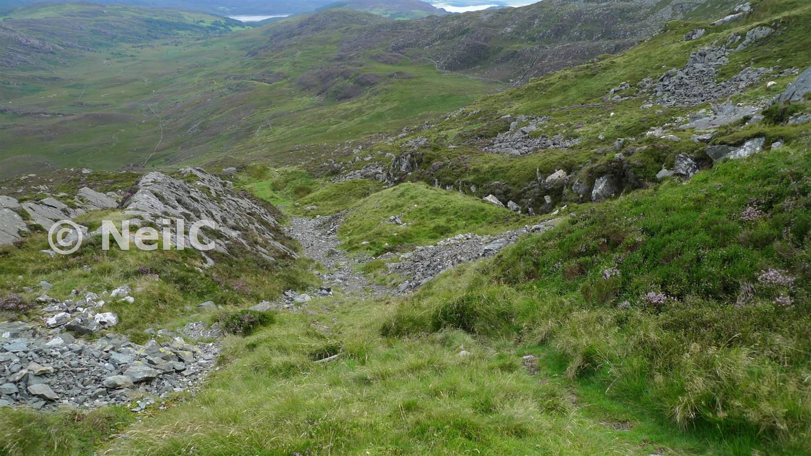 Looking down the line of the upper incline. The tips on the right of this with the line of workings on the right of the tips.