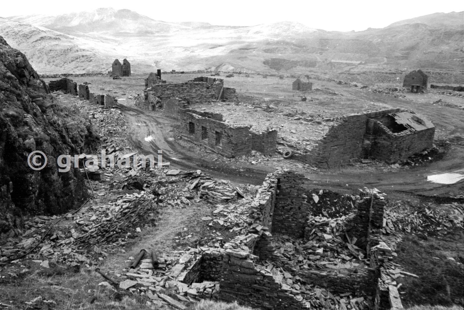 There were two ancient mills on this floor (Hollands'' floor 4 - later floor 8) the oldest on the left was a slate sawmill with lean-to additions for dressing probably in the late 1850s. The "New Mill" centre was an integrated saw and dressing mill of somewhat later. Probably equippped with Mathews'' dressers. Left foreground is the foot of a short incline from floor 9.