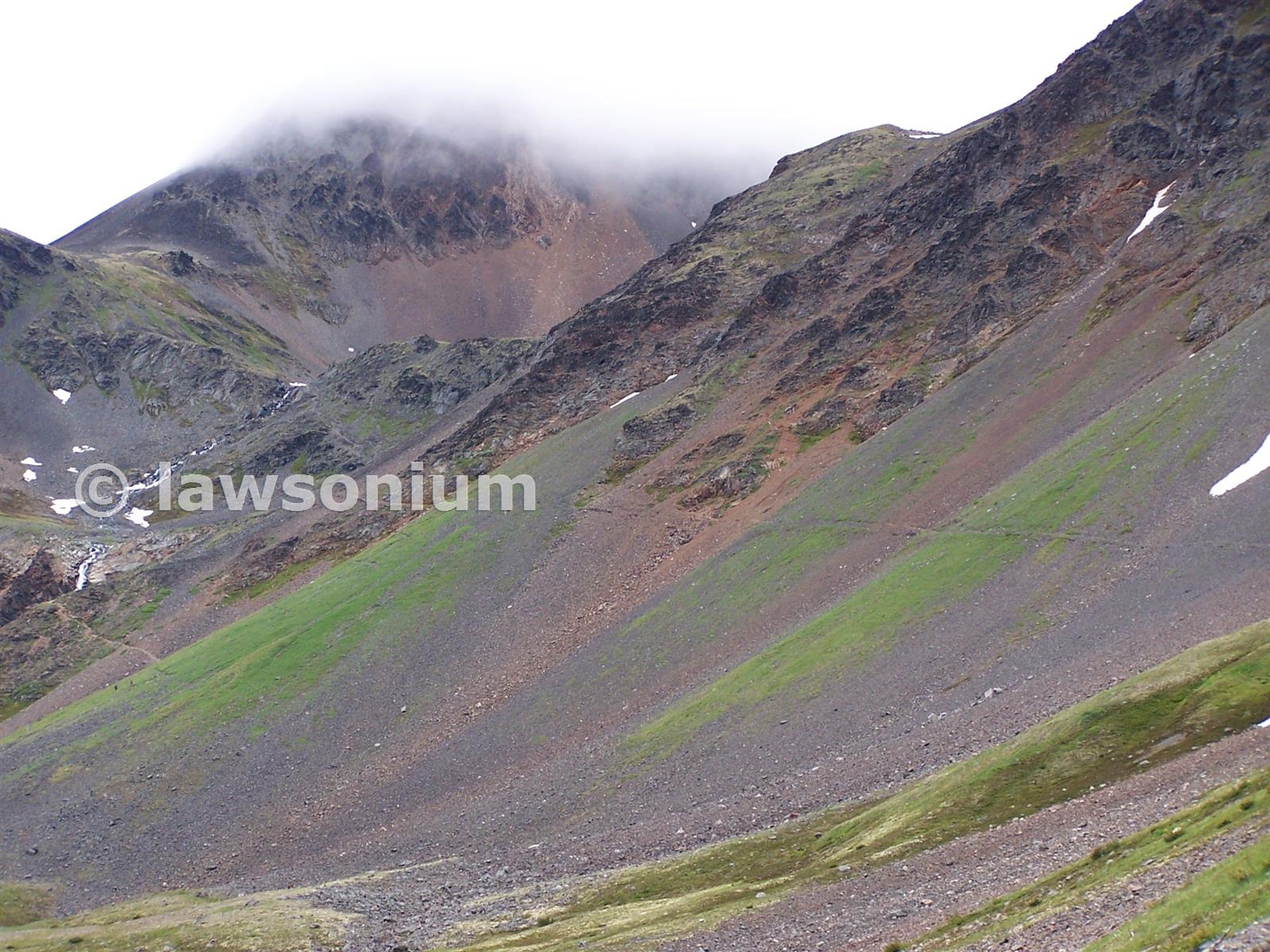 Orange coloured staining centre right shows the area that the cables from the winding gear ran up to from the valley floor just out of shot lower left of photo.