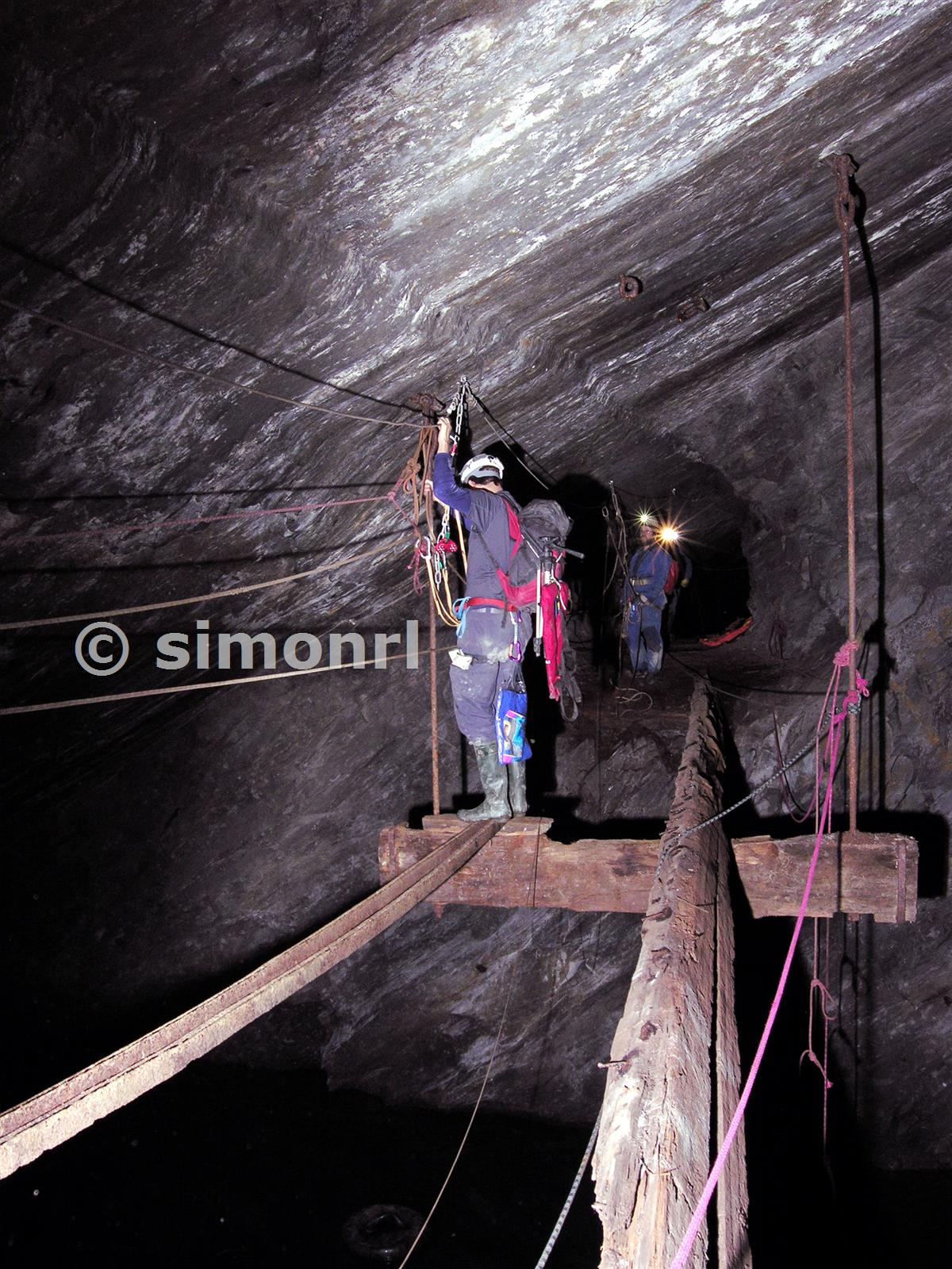 Vanoord displays just how many slings and karabiners he bought with him for exactly this purpose...
