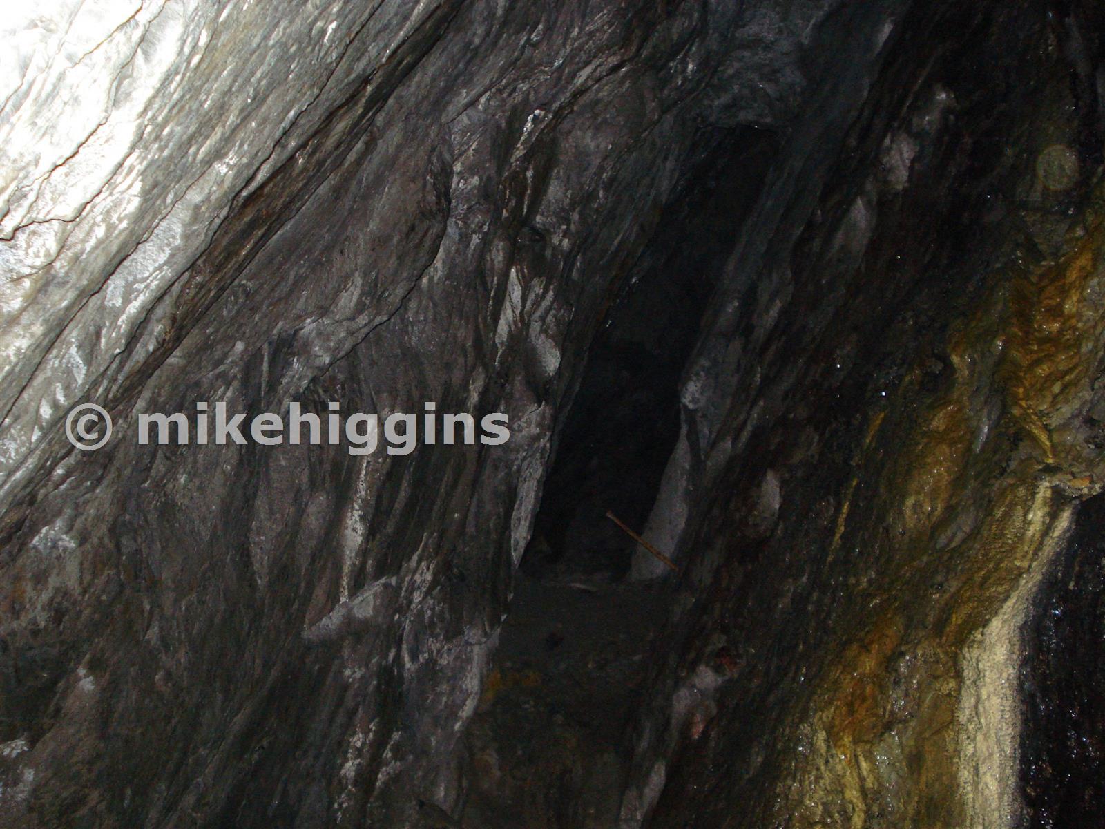 Looking west along the vein at the continuation of the level on the other side of a stope.