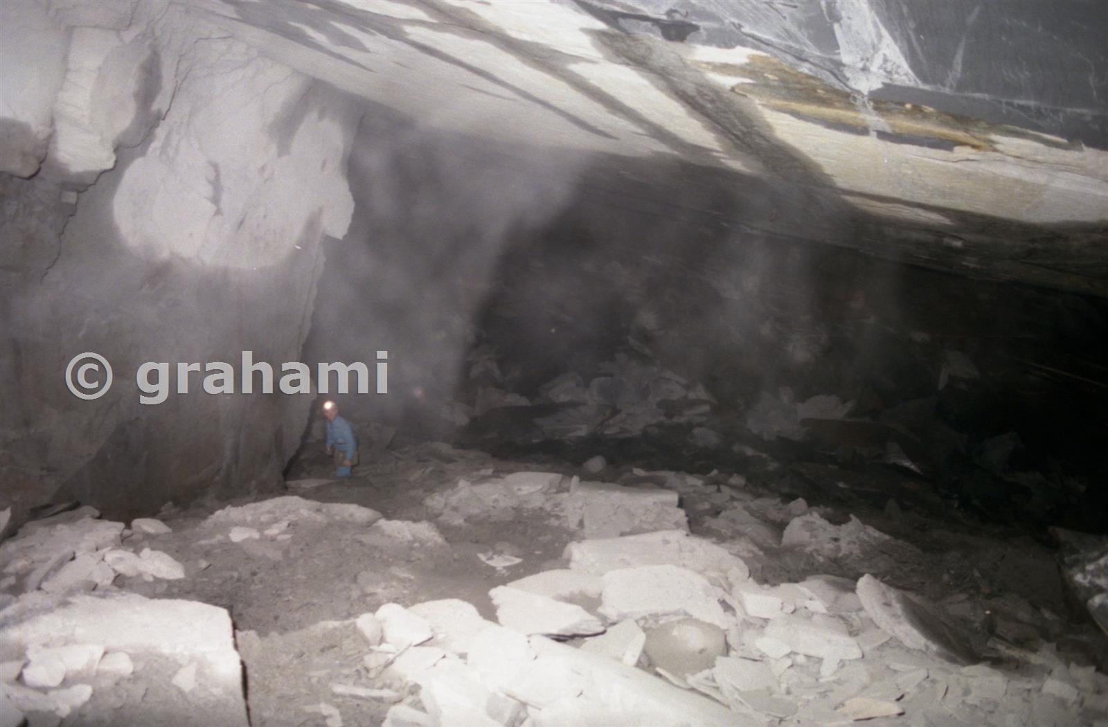 The foot of the chamber is on floor G - these chambers were variously labelled as "North Old Vein," B-series and so on. The numbering was in opposite directions, so this is B8. All this rock has now been worked away.