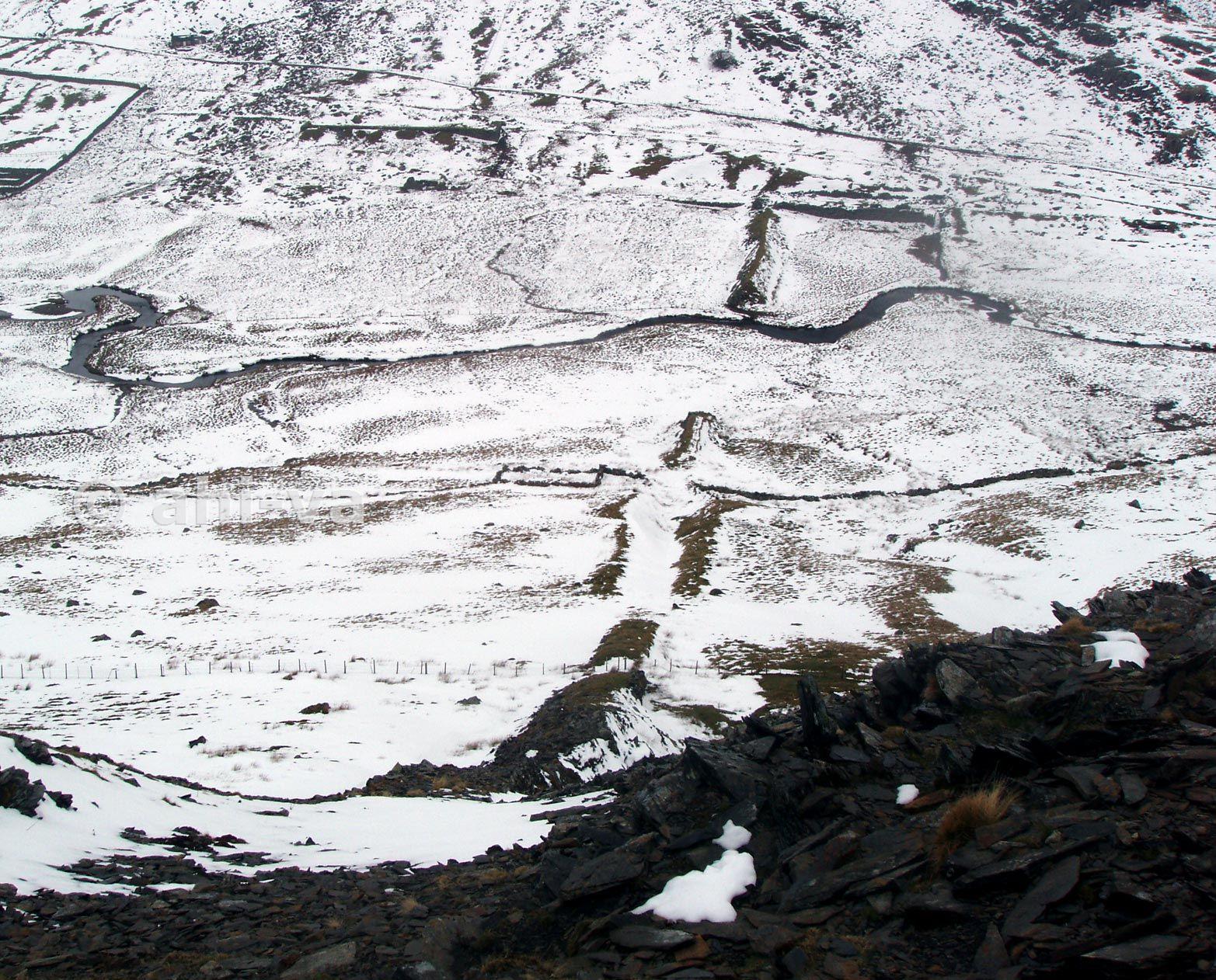 Photo taken from Cedryn Quarry (02/04/10) looking down an incline to where it links with a fork from the quarry tramway on the opposite hillside.