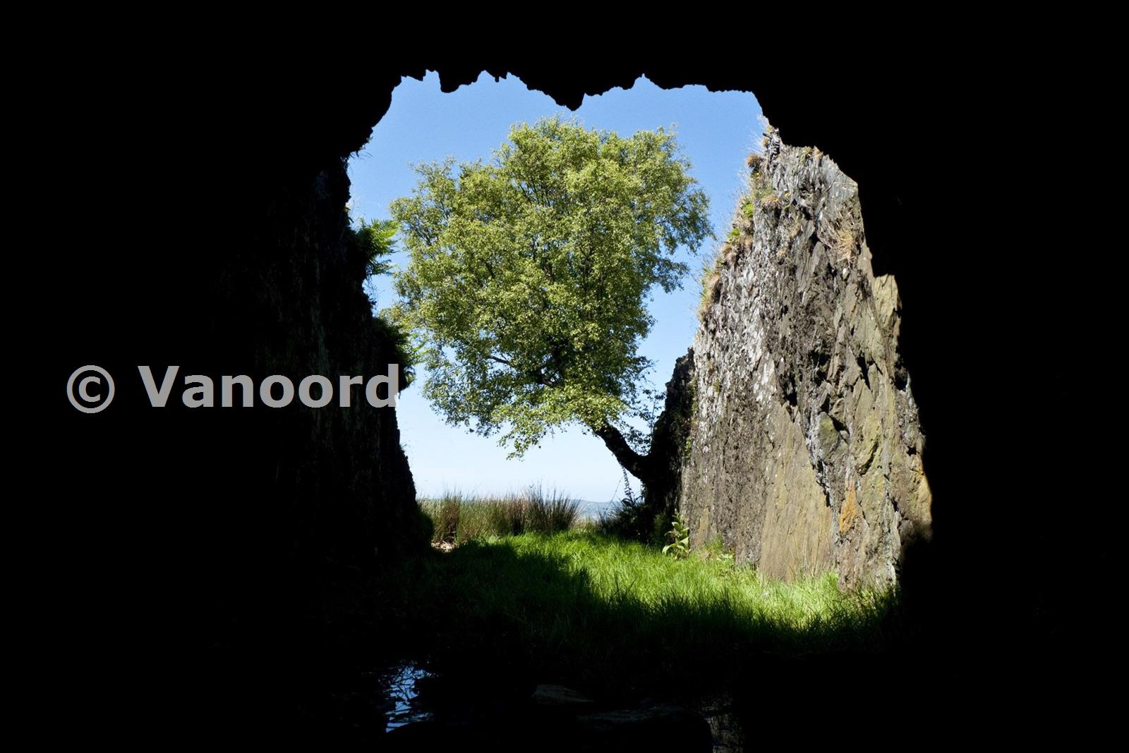Looking out of tunnel towards short cutting. Note that the adit has been partially dammed to provide a water supply to a trough for animals.