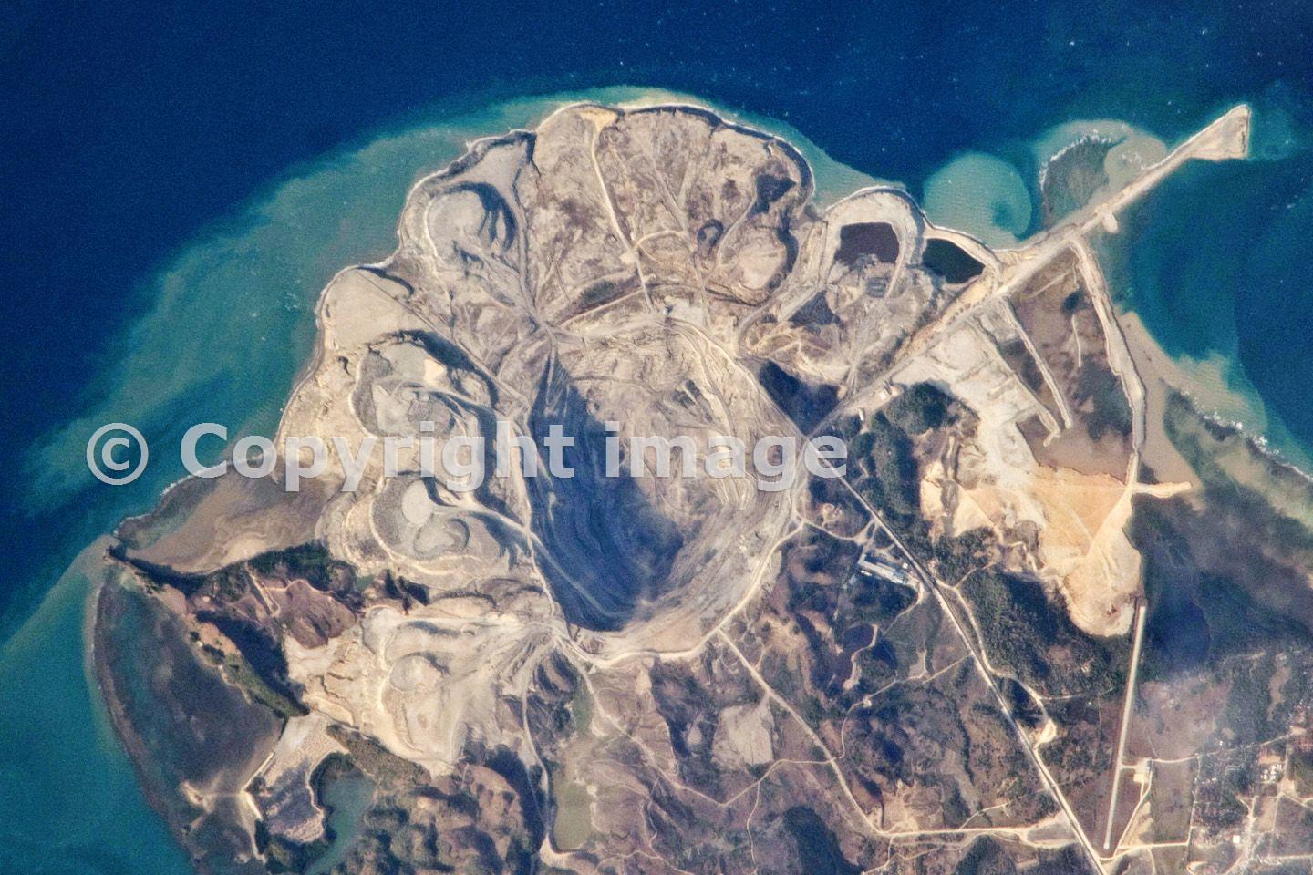 This detailed astronaut photograph provides a rare cloud-free view of the northern end of Semirara Island, which is located approximately 280 kilometers to the south of Manila in the Philippines. The northern part of the island is dominated by the Panian Coalfield, the largest of three coalfields on the island. Most of the coal is used for energy generation in the Philippines, with some exported to India and China. The Panian coalfield is being mined using open-pit methods. The rock and soil above the coal layers (or seams) is known as overburden. Overburden is removed from the pit and heaped into piles, several of which ring the northern half of the pit. Several of the dark coal seams are visible along the sunlit southern wall of the pit (these may be more visible in the larger image version). Plumes of sediment from the overburden piles enter the Sulu Sea along the northern and eastern coastline of the island. The Semirara coalfields formed from 12–23 million years ago along what was then a coastal plain—similar to the current geologic environment of the southeastern Gulf Coast of the United States. Organic materials were deposited in sequences of sandstone and mudstone, which were then covered by limestones as the environment became progressively more marine. Over geologic time, increased pressure from the overlying rocks changed the layers of organic material into coal.