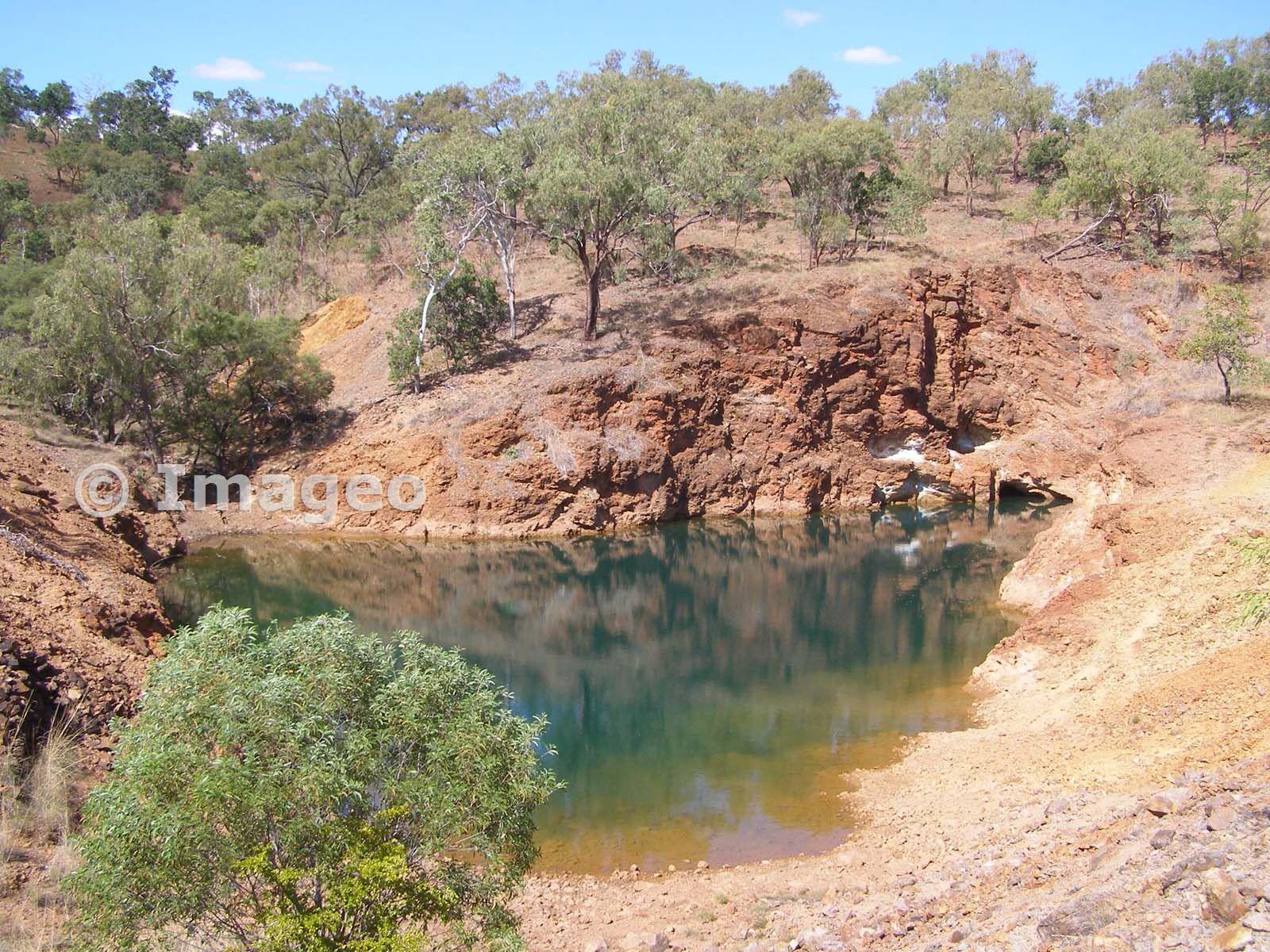 A view from the western end of the open cut. Note copper coloured water in the pit.