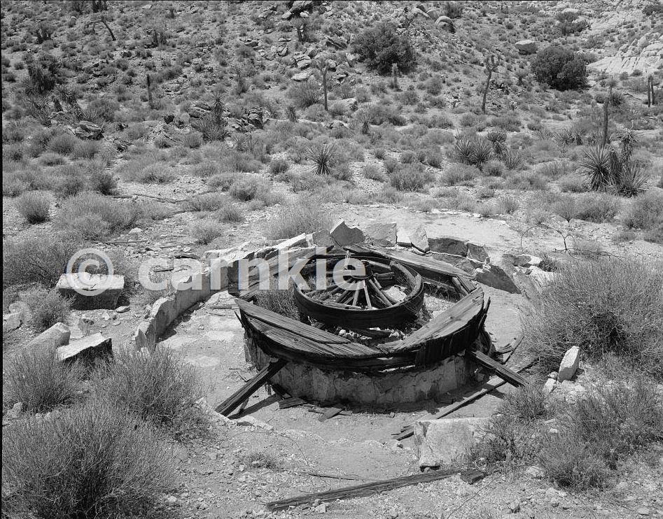 The arrastra is an important example of nineteenth- and twentieth-century milling technology. This specimen is unusual because it used a wooden wheel as the pivot mechanism; only two of this type are owned by the National Park Service. It is considered regionally significant because it is the only wagon wheel arrastra yet found possessing integrity of location and construction. Courtesy Library of Congress, Prints & Photographs Division, HAER, Reproduction HAER CAL,36-TNPAL.V,4-2