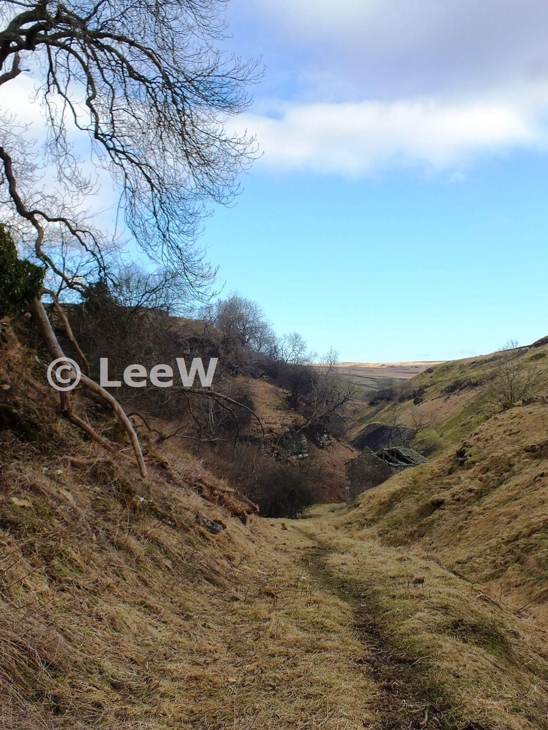 View along the old miners path to the mine site with the shop visible