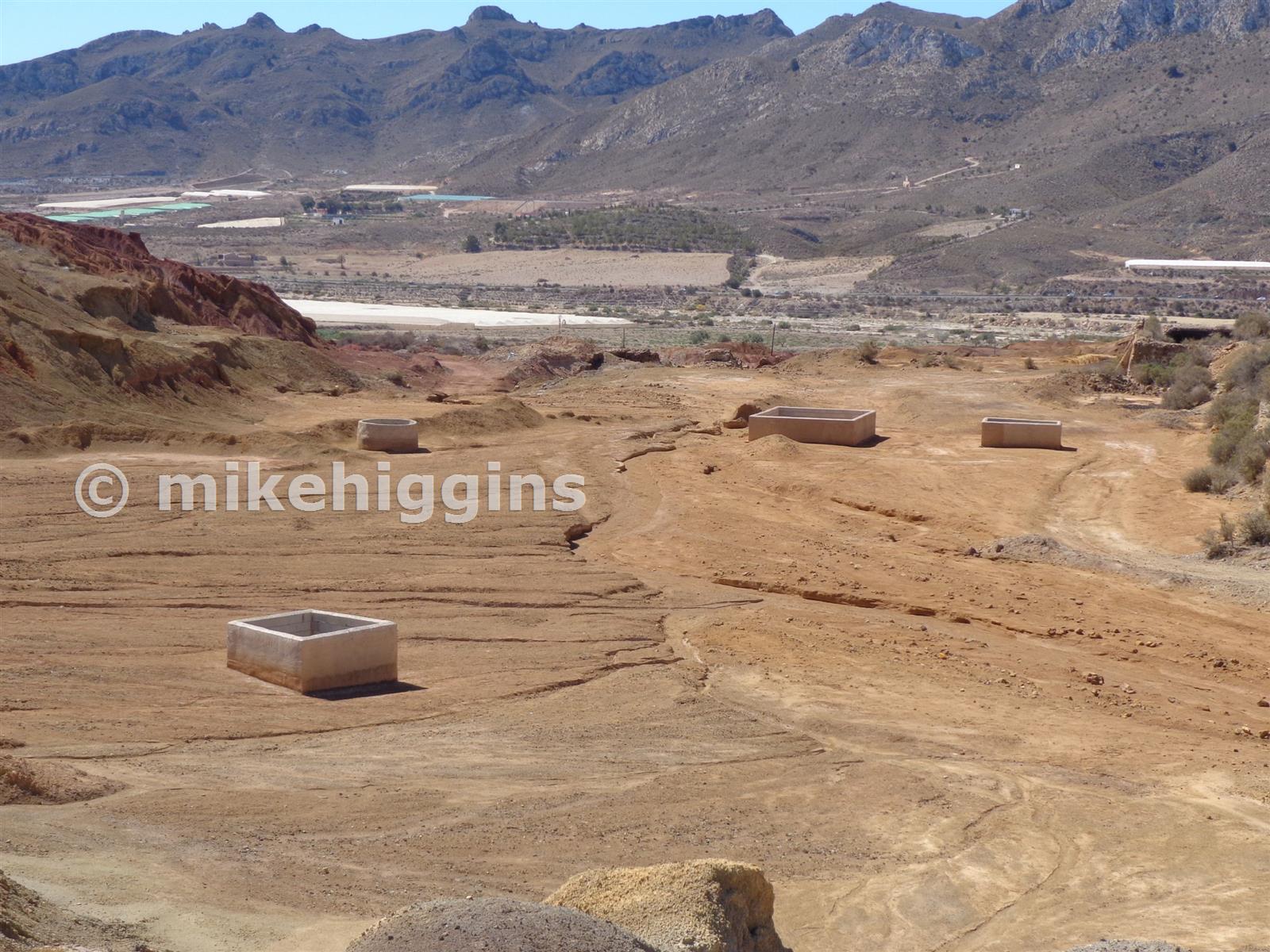 View from the shaft looking west showing 4 open shafts on the plateau below