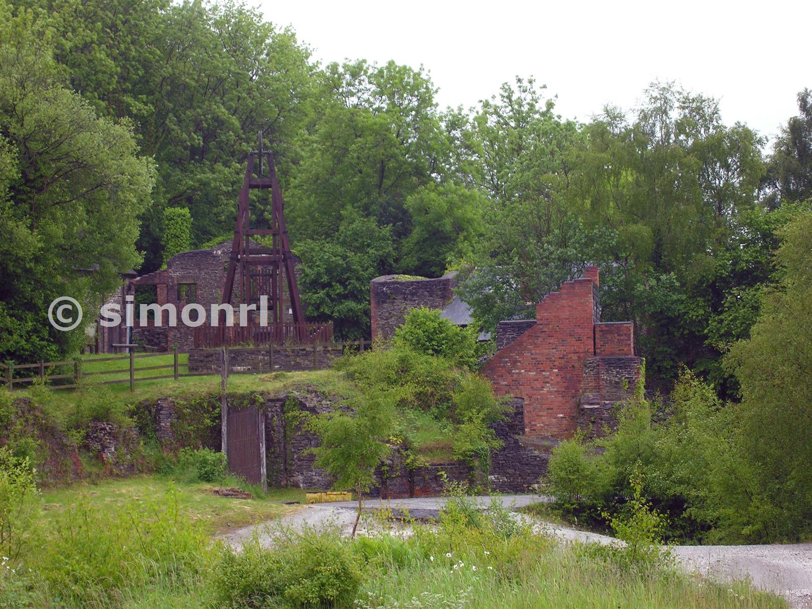 Looking towards George's Shaft form across the site, headgear visible. Snailbeach Mine 06/06/2009