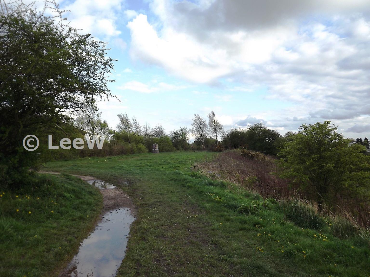 View along the top part of the pit site. The structure is a memorial (war?). The other shaft is to the left and behind - probably in the trees