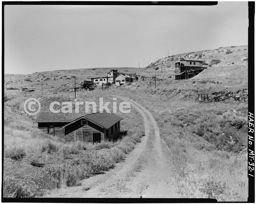 VIEW OF THE SMITH NO. 3 SITE AREA TO THE NORTHWEST. THE MINE OFFICE BUILDING IS IN THE FOREGROUND AND THE TIPPLE AND PROCESSING PLANT ARE IN THE BACKGROUND. Courtesy Library of Congress, Prints & Photographs Division, HAER , Reproduction number HAER MONT,5-RELO.V,2-1