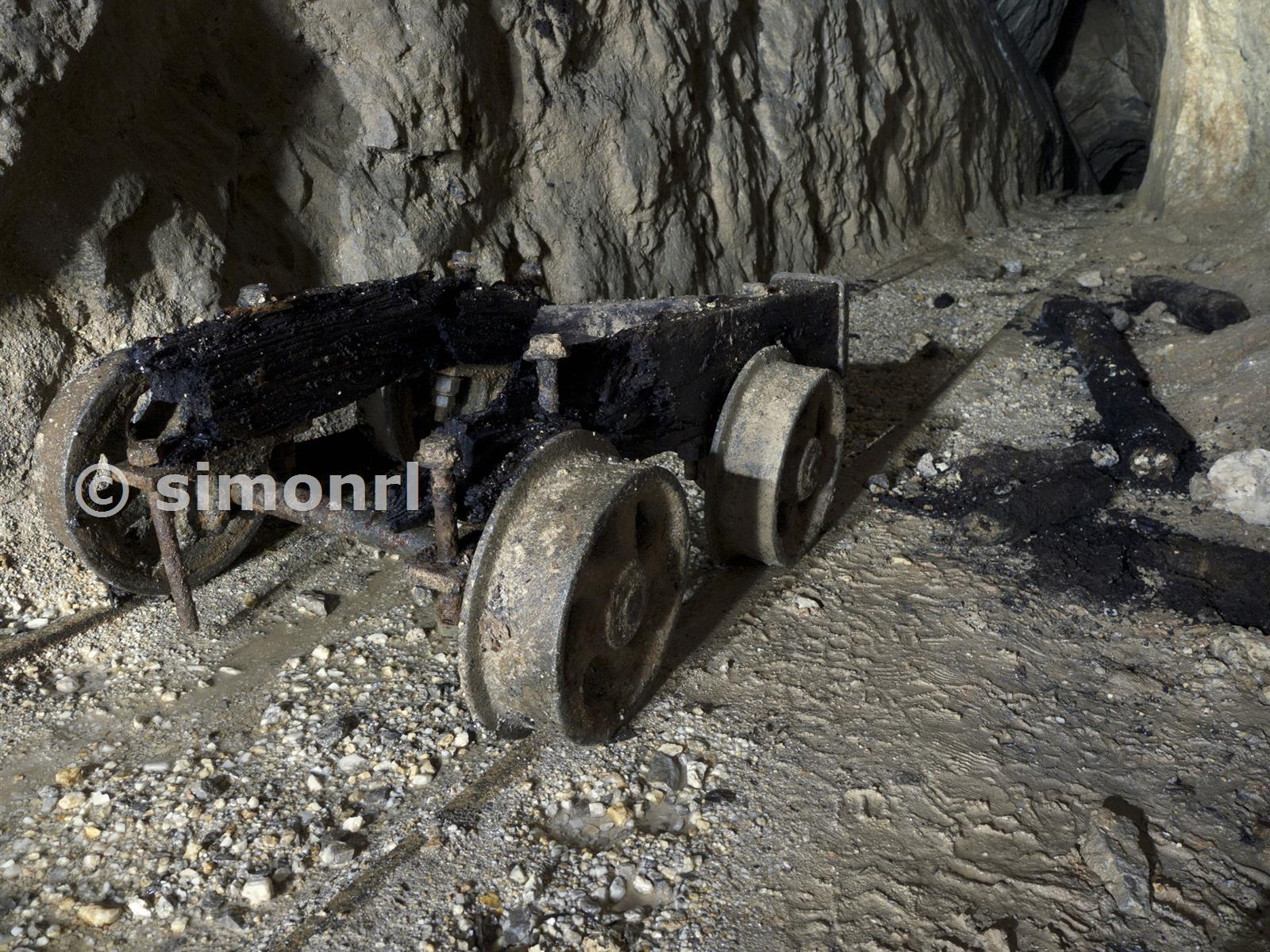 Wooden wagon chassis, lowest level Bell Grave Lead Mine March 2012