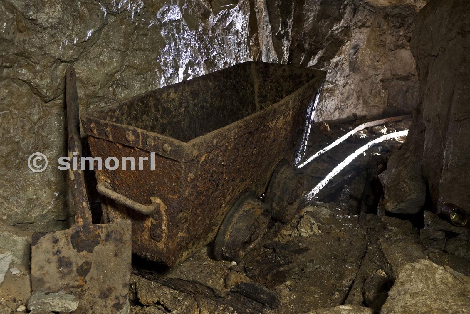 Wagon on the 250 foot level at the foot of the main engine shaft. Snake Lead Mine May 2011