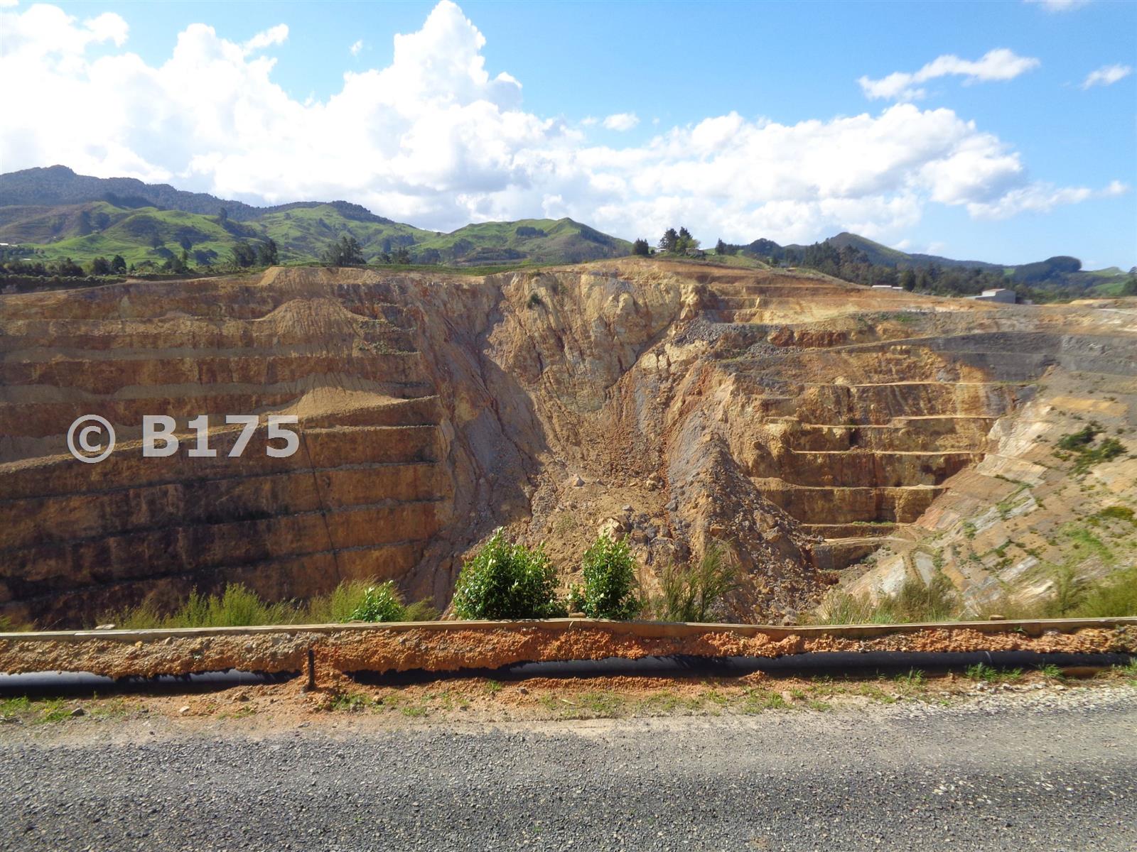 Compare this pic with an earlier one (2009?) in the same batch taken from the same point. The haulroad declining R to L spirals twice more to reach the bottom of the 300m deep pit, underground mining is another 300m below that. The collapse of the pit wall has severed all the haul roads and will test the nerve of the people tasked with reinstating it all.