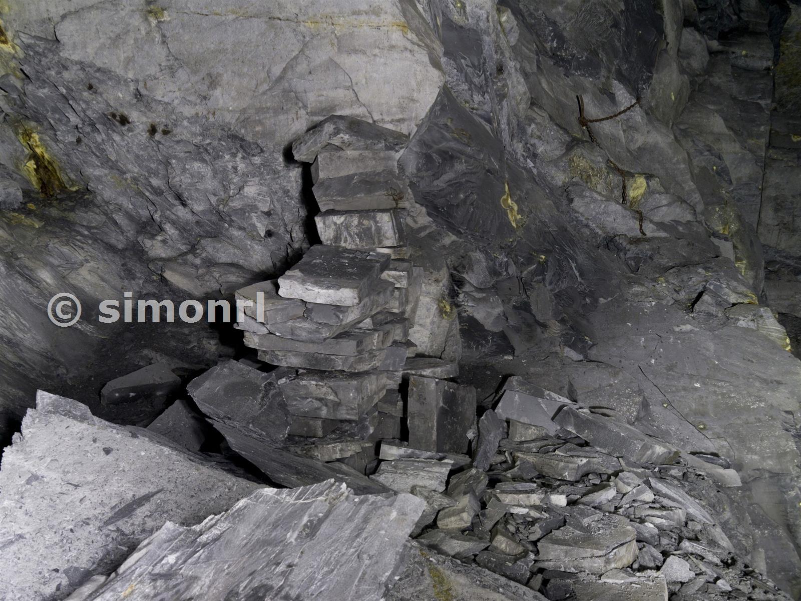 Small wall, ledge on B floor Ch 3W Cwmorthin Slate Mine February 2015