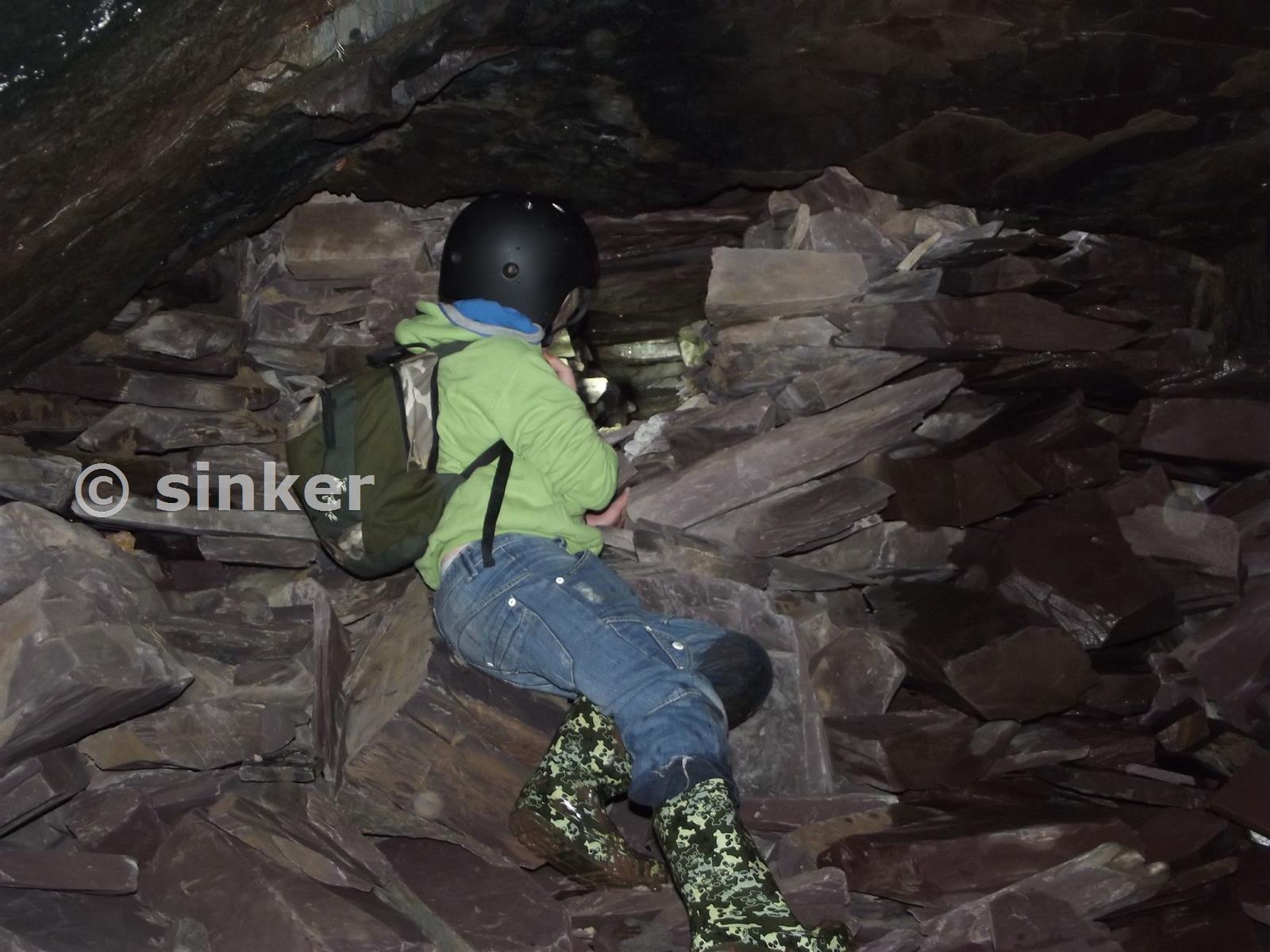 A walled-up tunnel with very dodgy looking crawl leading through it.