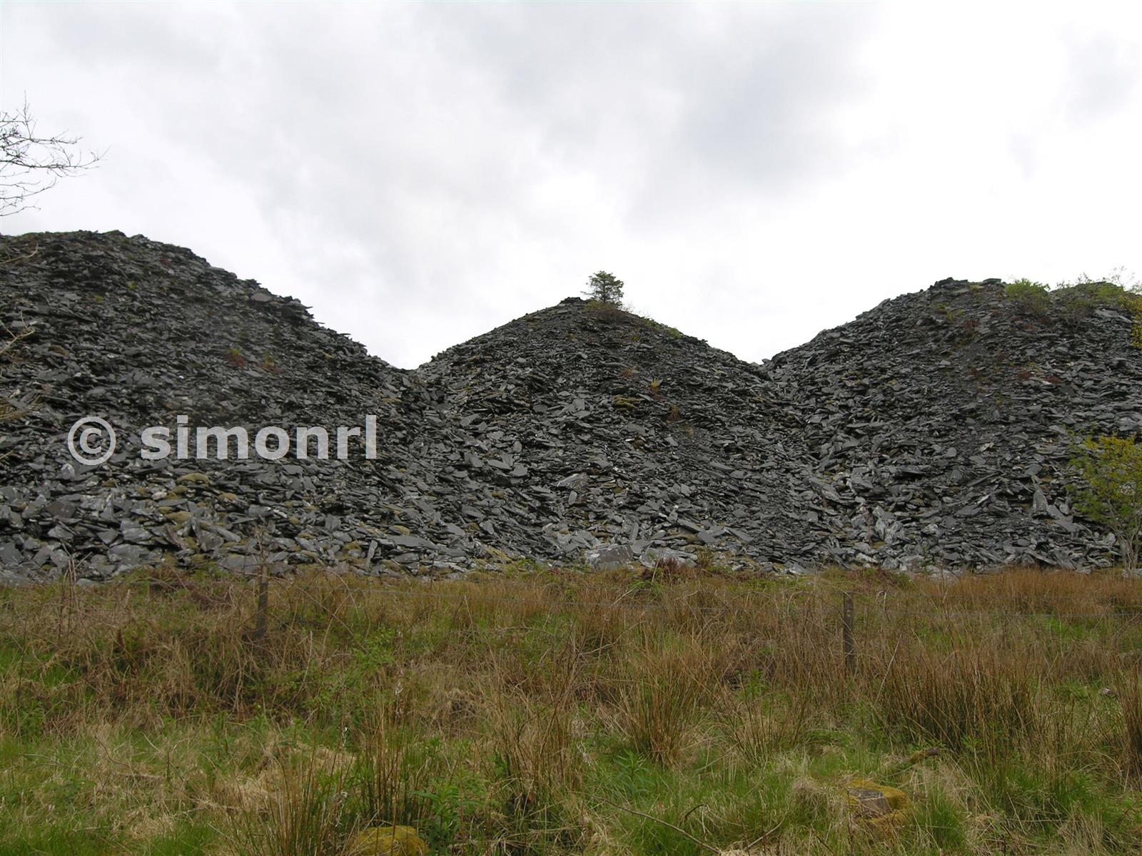 Waste tips from haulage platforms behind carpenters shop All locations worked out from survey in Slates from Abergynolwyn, courtesy of Thorpey Bryn Eglwys 11/05/2009