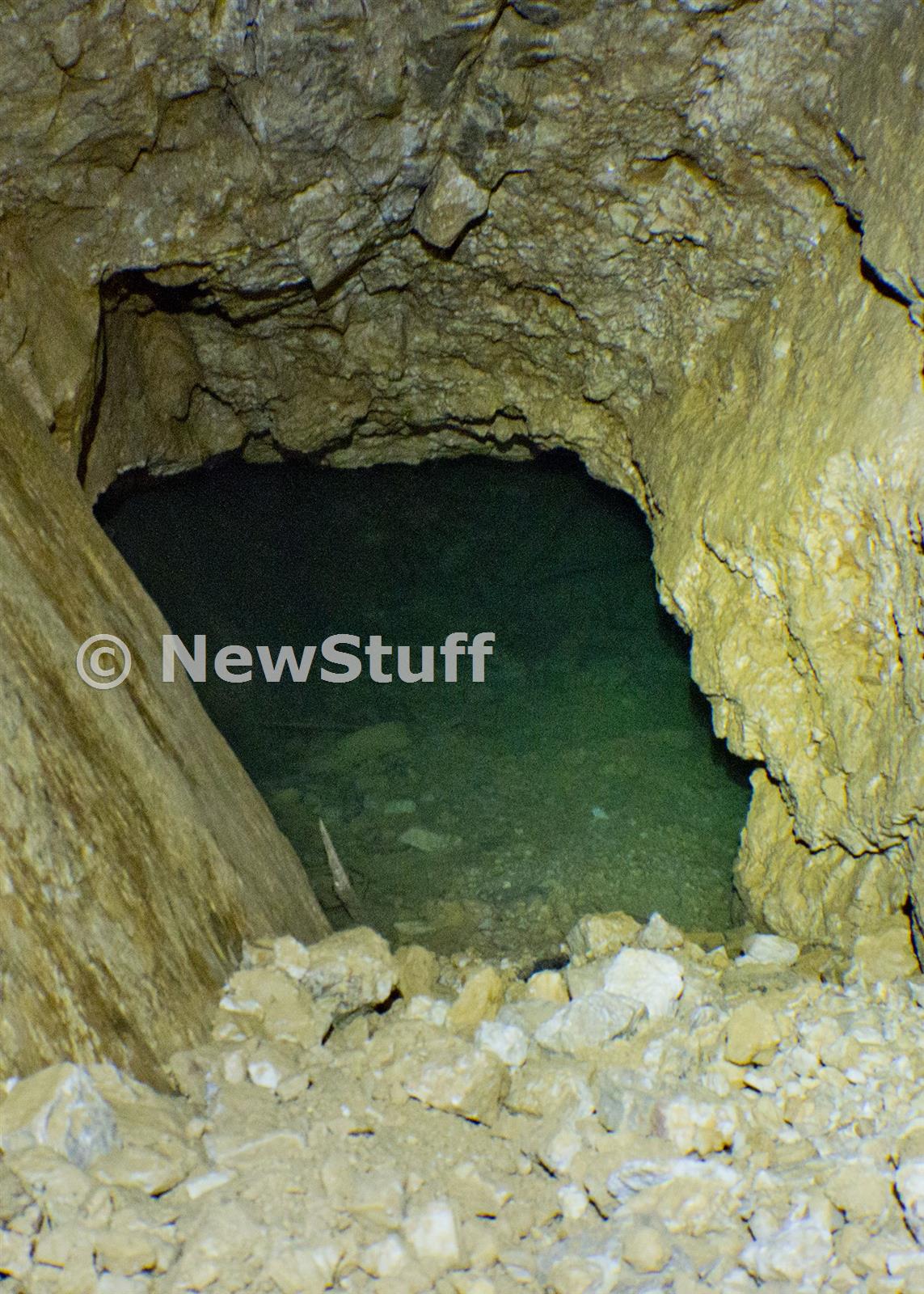 The water level on 17th Oct 2013. At the ceiling of the lower, formerly accessible level.