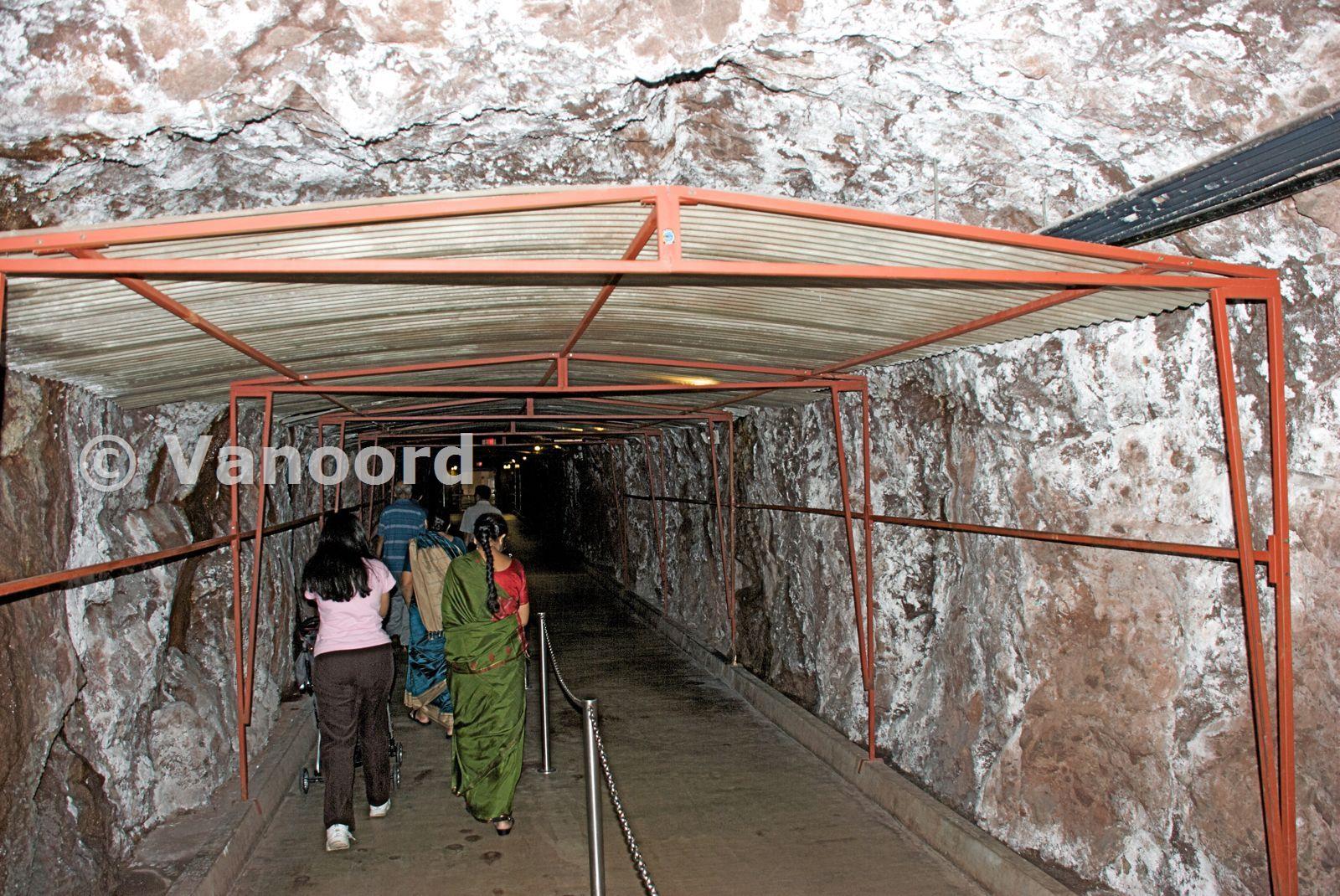 False roof in an access tunnel on the Nevada side, apparently to prevent water from falling on the walkway