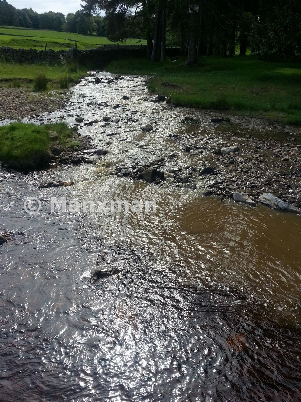 Flowing into the Howden Burn (foreground). A vast volume of water suddenly issuing from the level.
