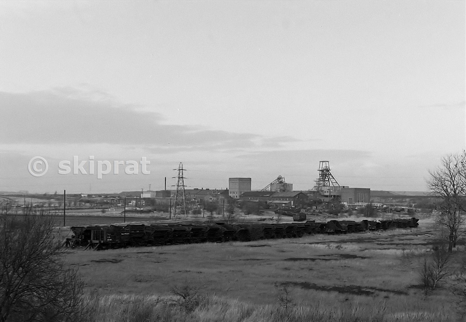 View of Wath Main from Station Road, next to the old Hull & Barnsley Railway station which remains intact today in residential use (closed in the 1930s). Two shaft markers can be found on the bank above the north bank of the lake currently filling the space where the sidings were in this photo.