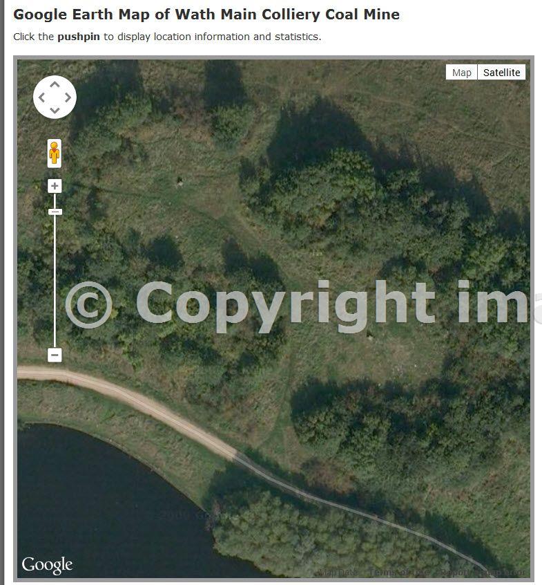 Zoomed Google Maps satellite image of the Wath Main shaft markers