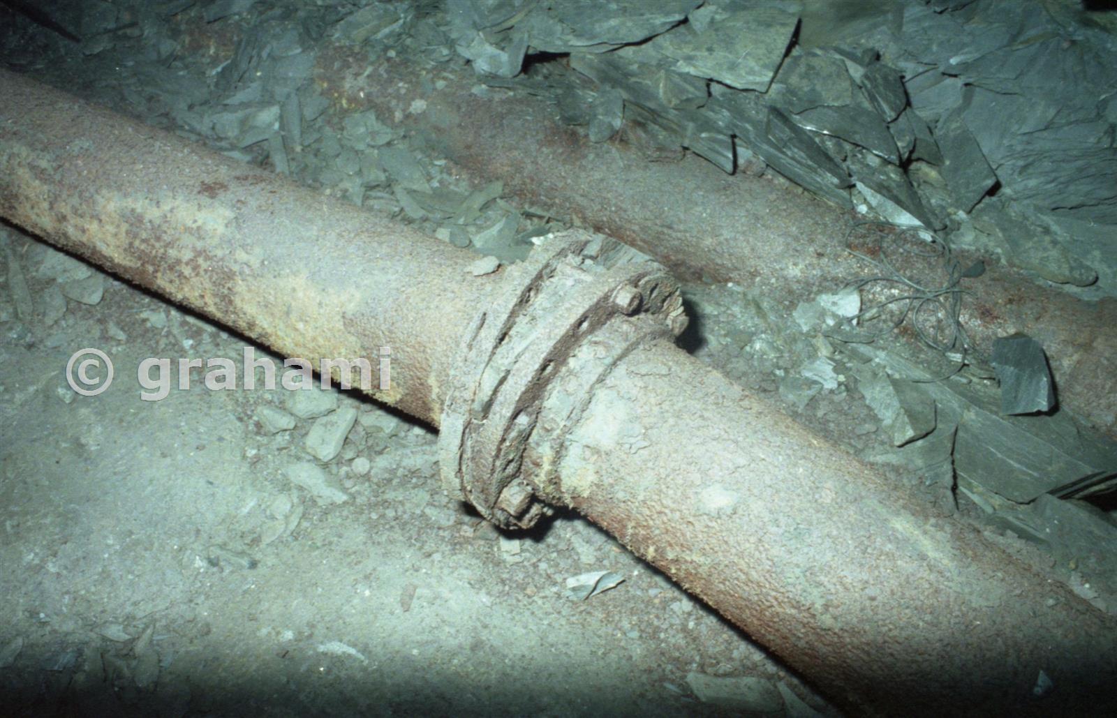 Just where the "New" Sulzer main entered chamber B4 was this interesting joint - there must have been a slight problem with the angle of the various pieces! Again you can just see the "Old" main in the floor to the right.