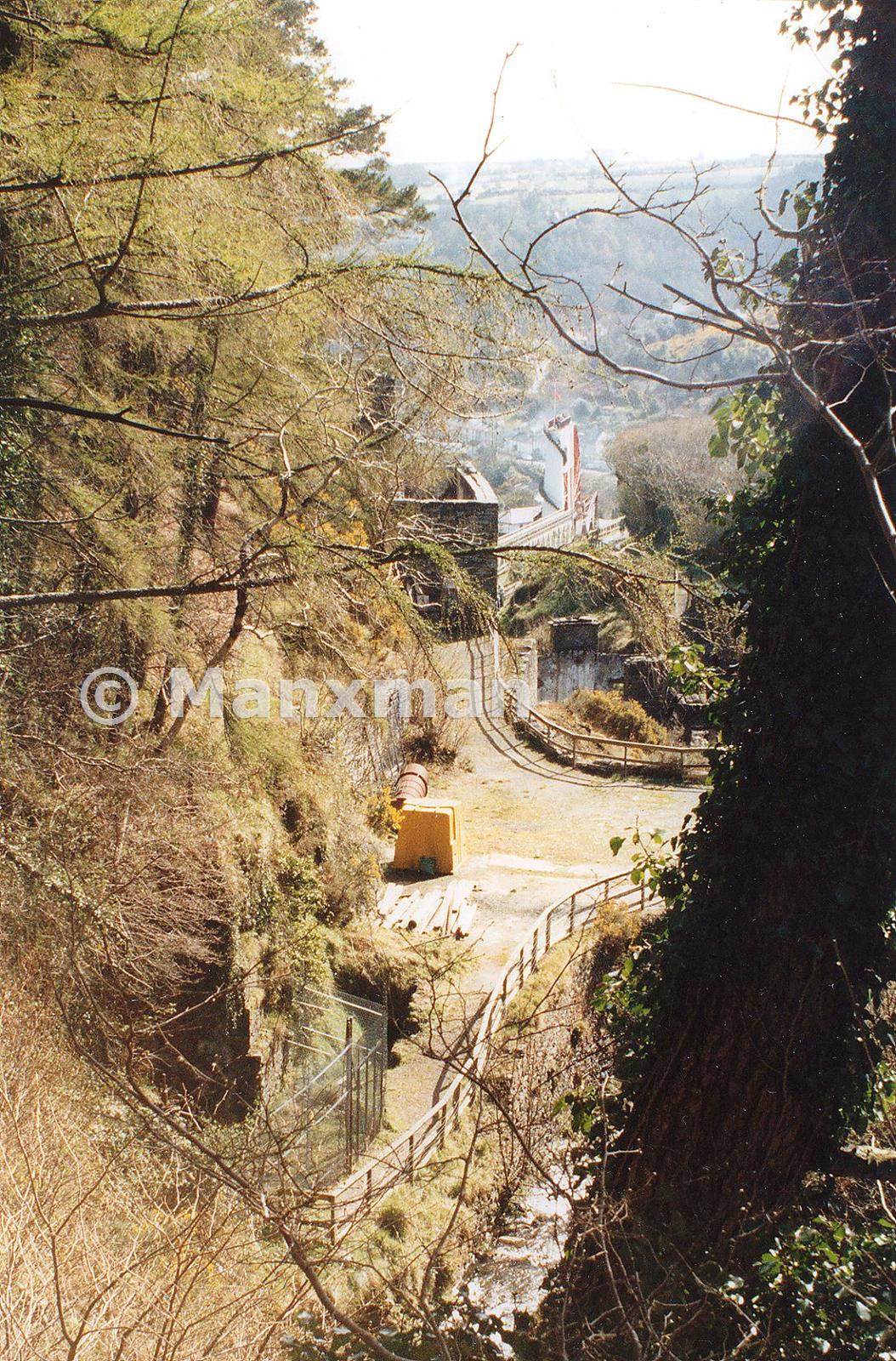Welsh Shaft (with Man Engine) in foreground, Turbine House and Wheel in middle distance and background respectively.