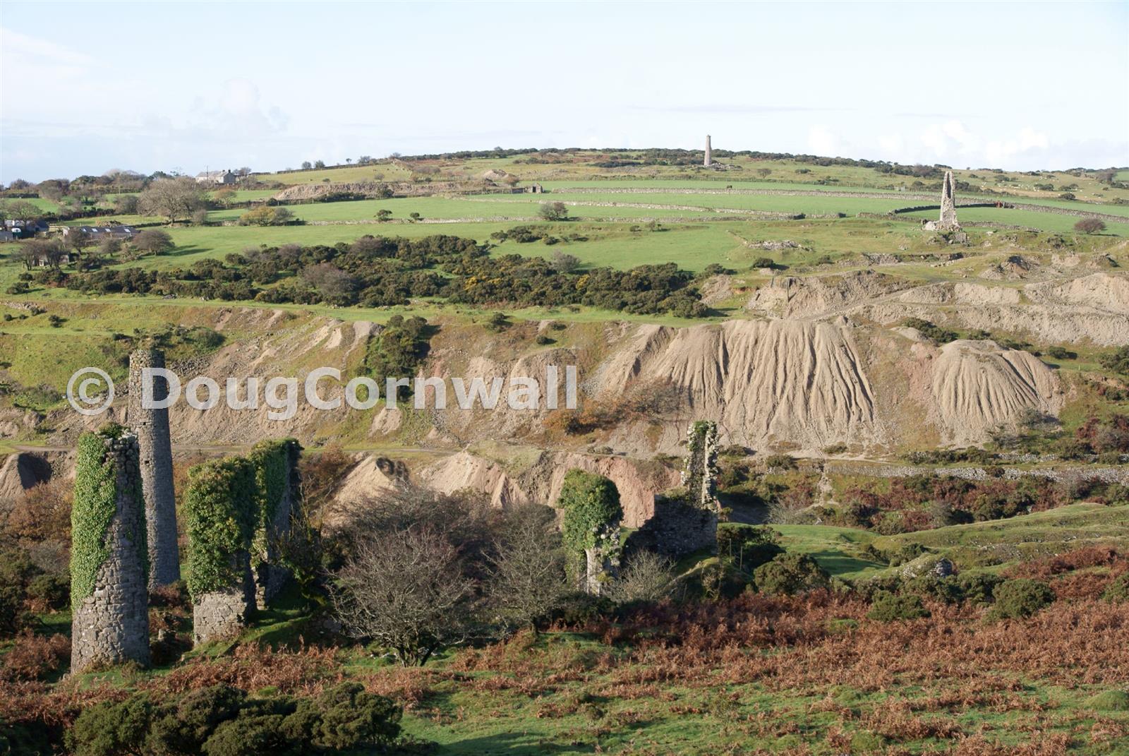 West Caradon dumps centre with remains at Eliott shaft to right. Nearview are ruins at S Caradon and in distance is Craddock Moor mine.