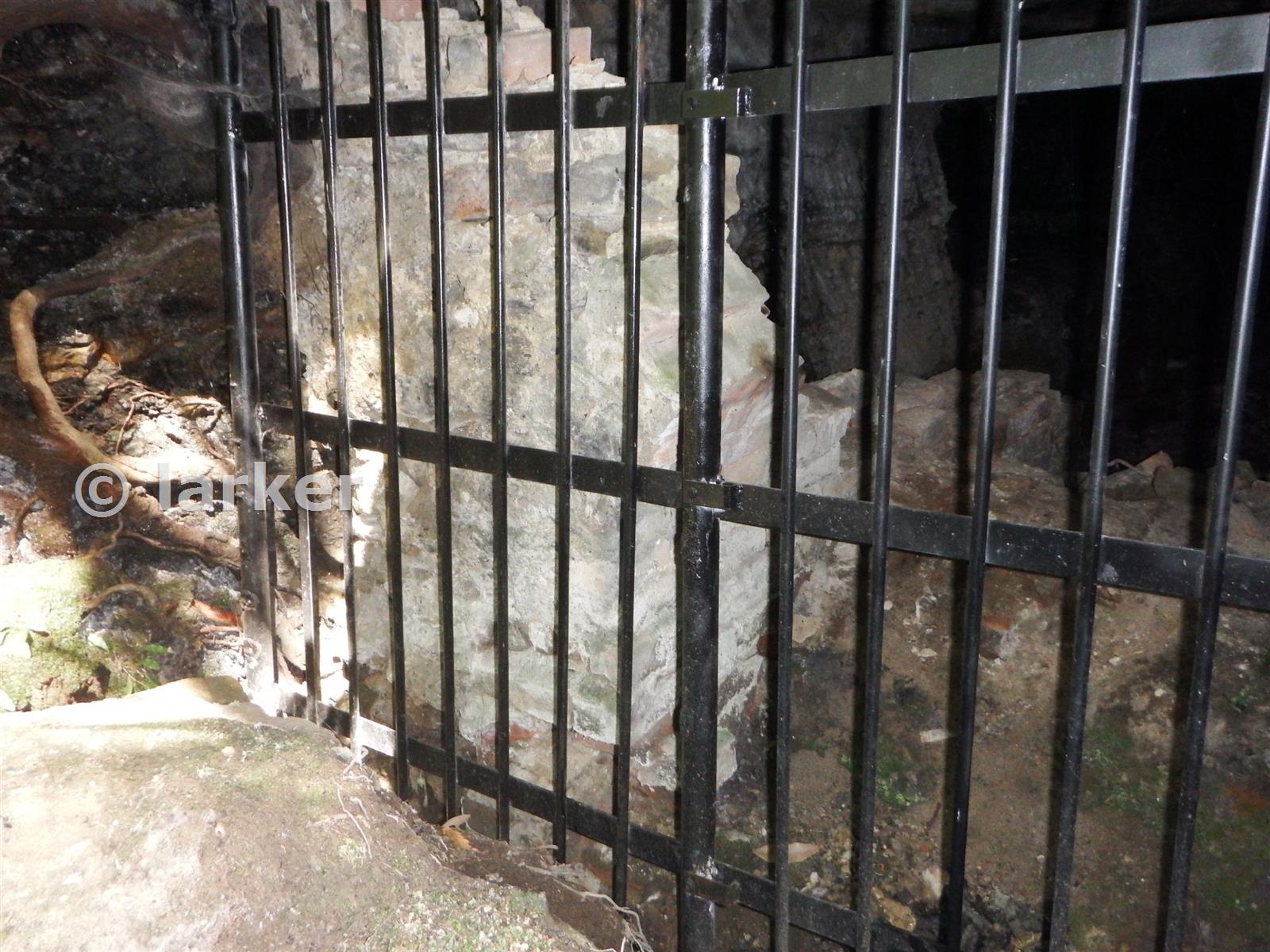 Gated western access, about 30m from the the other three eastern adits. There is some brickwork just inside the gate with the remnants of an archway. Possibly something to do with ventilation?
