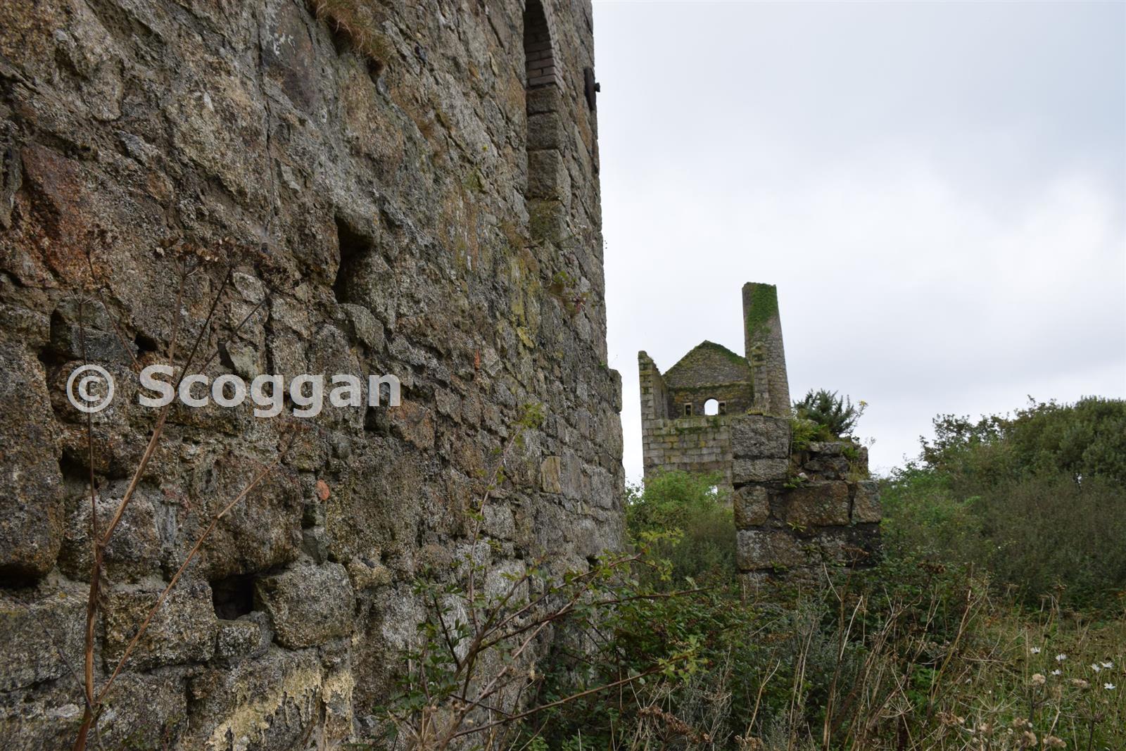 Fortiscues Shaft 28in Whim Engine Flywheel Pit in the fore ground beyond Harvys 90in Engine House 09-09-16