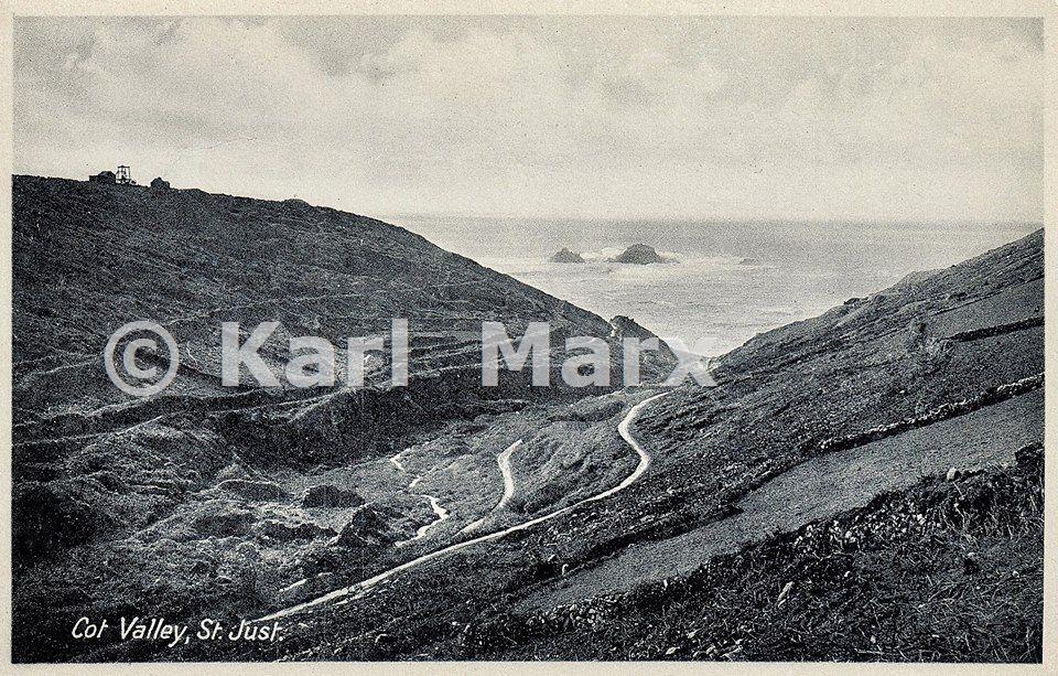 The first of the 20th century reworkings of the mine occured through the somewhat philanthropicefforts of a local man, Henry Francis Olds, who refurbished the mine in its shallow parts and installed a mill in cot valley. This was one of the last mines to be floated for tribute, which was a welcome and familiar custom for the recently discharged miners of Botallack, amongst others. Sadly the worst often comes to the best of character, and Olds tragically had a fatal accident falling down the main shaft in November 1914. Hermon Hill is incredibly exposed to winter gales, which may have played a factor. The mine struggled on, but through lack of competent management closed once the ore stock piles were exhausted in December 1915. In this photograph, you can see the ruined remains of the Wheal Rose Stamps and the water leat to Letcha Cliff. During the 1840s this flank of the hill side was known as "Wheal Gallish", "Gallows Work". Maybe this area has a much longer morbid heritage than often appreciated.