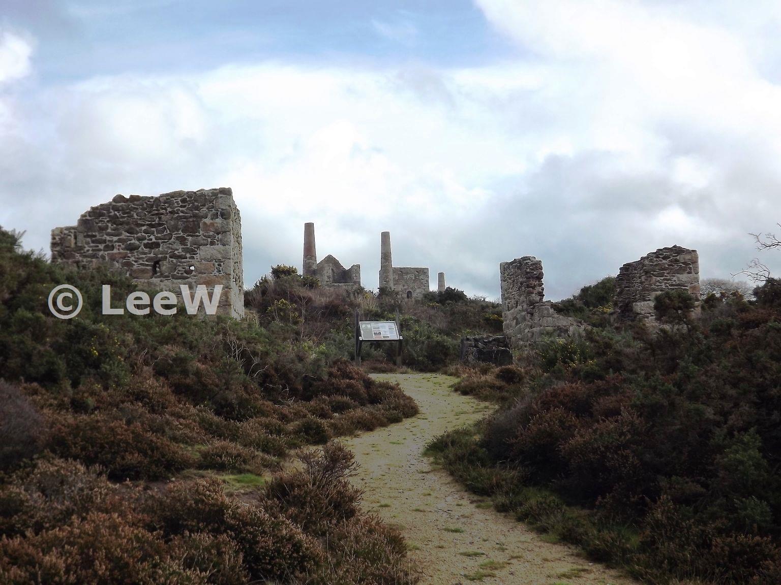 The two furnaces front, the stamps engine house behind and left, the pumping engine house behind and centre and the chimney of the winding engine house behind. Nov 2011