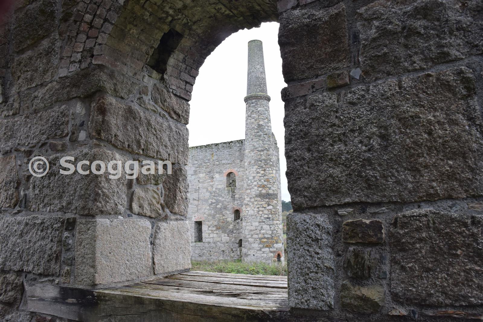 Inside Trefusis 20in Winding and Stamping Engine House looking out at Magors Shaft 70in Pumping Engine House 11-11-16