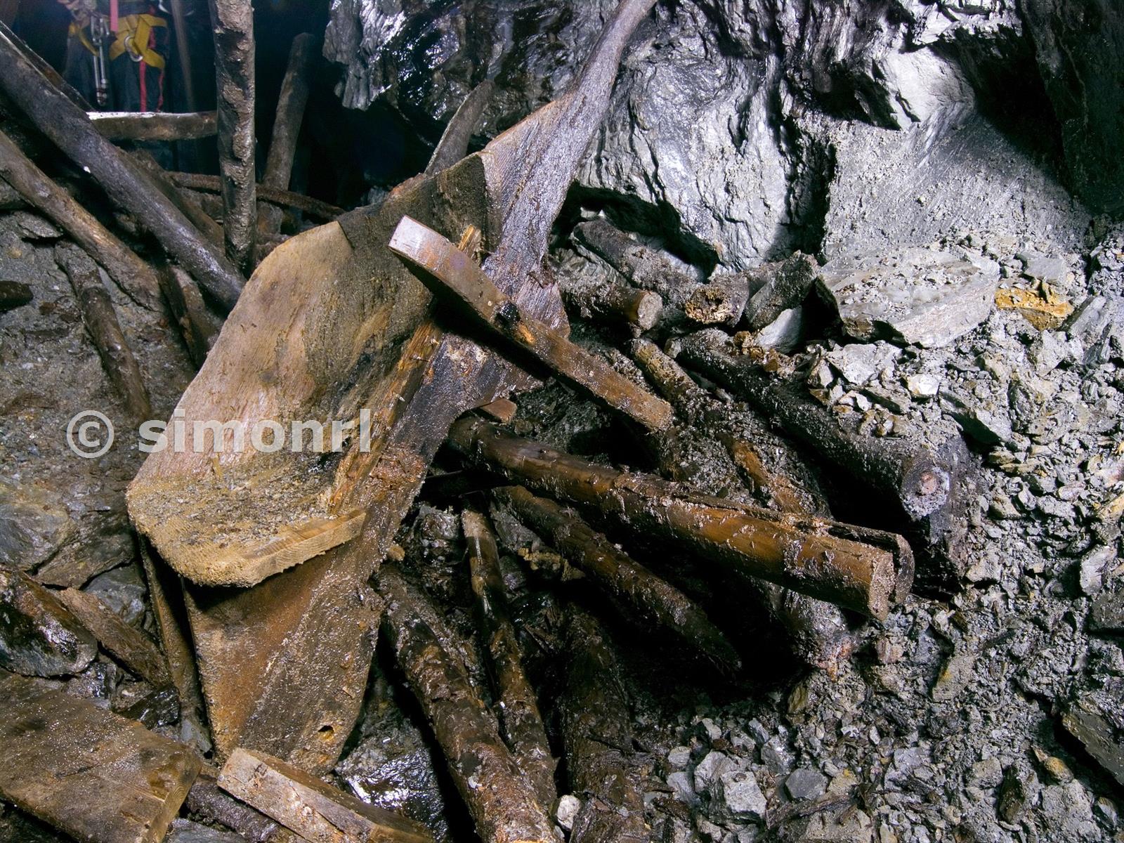 A mostly intact wheelbarrow, deep adit level, Bwlchglas Lead Mine. 15/05/2009