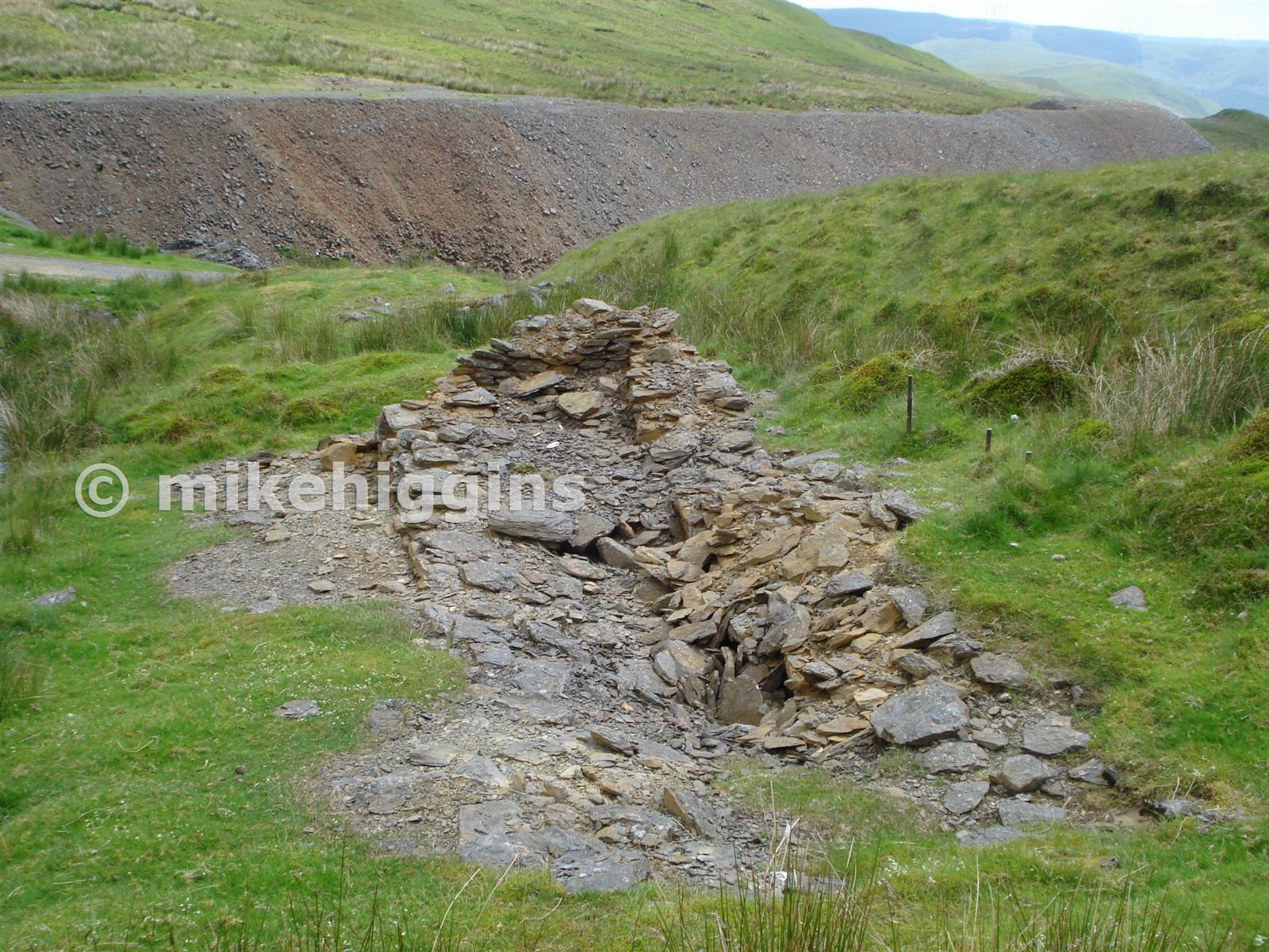 This very ruinous wheelpit is situated on the west side of the valley. The bolts at the side suggest it was a drawing wheel, possibly made redundant by the construction of the larger drawing and crushing wheel further down the valley.