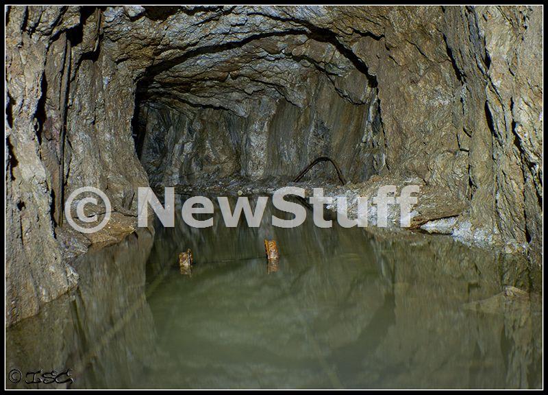 The view when going right in the recently de-watered level. A nice set of Wagon wheels are still resting on the Rails. The water is gone completely a short distance forwards.